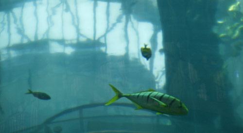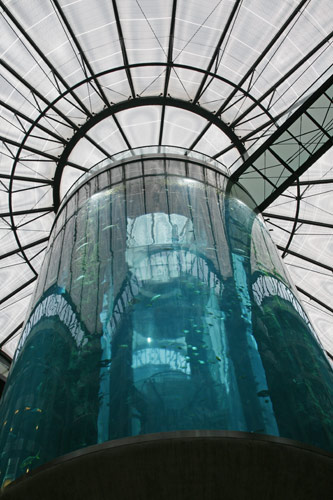 Het is een grote glazen buis waar je met een lift doorheen kan en bevat een miljoen liter water met ongeveer 1500 vissen. Een prachtig gezicht!