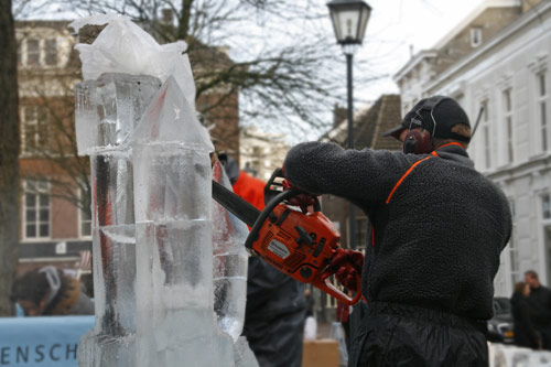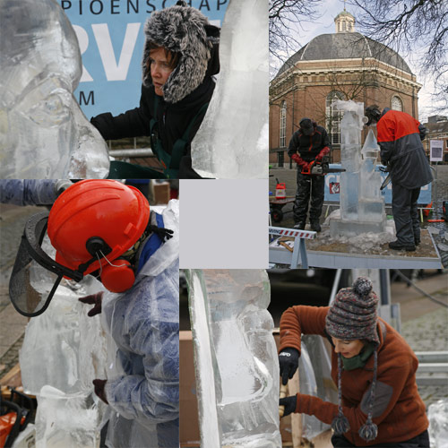 Maar al die sneeuw deed me wel even terugdenken aan afgelopen december, toen het wereldkampioenschap Icecarving werd gehouden in Arnhem. Leuk om te zien hoe men met kettingzagen, beitels en messen de grote blokken ijs te lijf gaat.