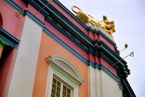 De snoepkleurtjes passen heel goed in de sfeer van de rest van de stad, waar veel huizen in pastelkleurtjes zijn geschilderd.