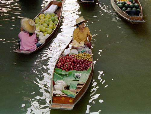 Rondom Bangkok zijn een aantal zogenaamde ‘floating markets’, markten waarbij de handelswaar vervoerd en vaak ook verkocht wordt op en vanuit bootjes. De markten stammen uit de tijd dat vervoer over water belangrijk was in Thailand. Later kwamen er in Bangkok wegen, maar buiten de hoofdstad bleef de drijvende handel bestaan.