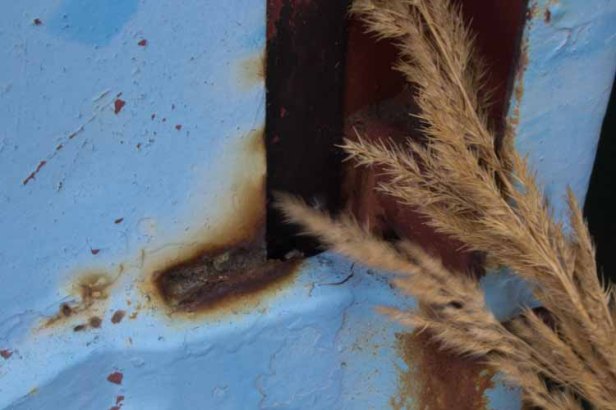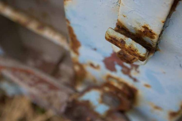 Op de een of andere manier zijn foto’s van oude, kapotte dingen vaak heel erg mooi om te zien. Zeker met zo’n leuk kleurenspel als hier, waar het roest mooi afsteekt tegen het lichtblauw. De foto’s zijn gemaakt op de NDSM-werf in Amsterdam.