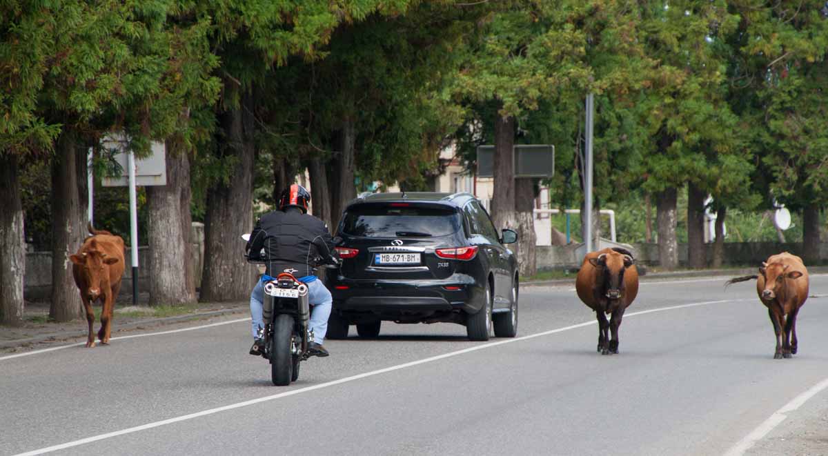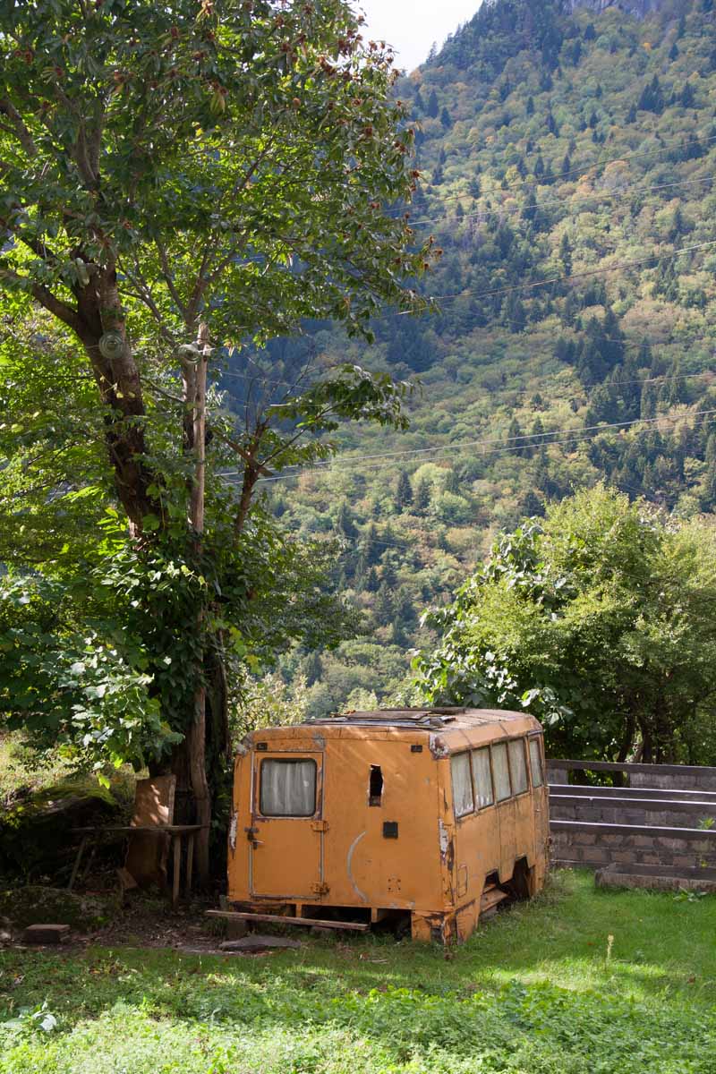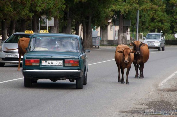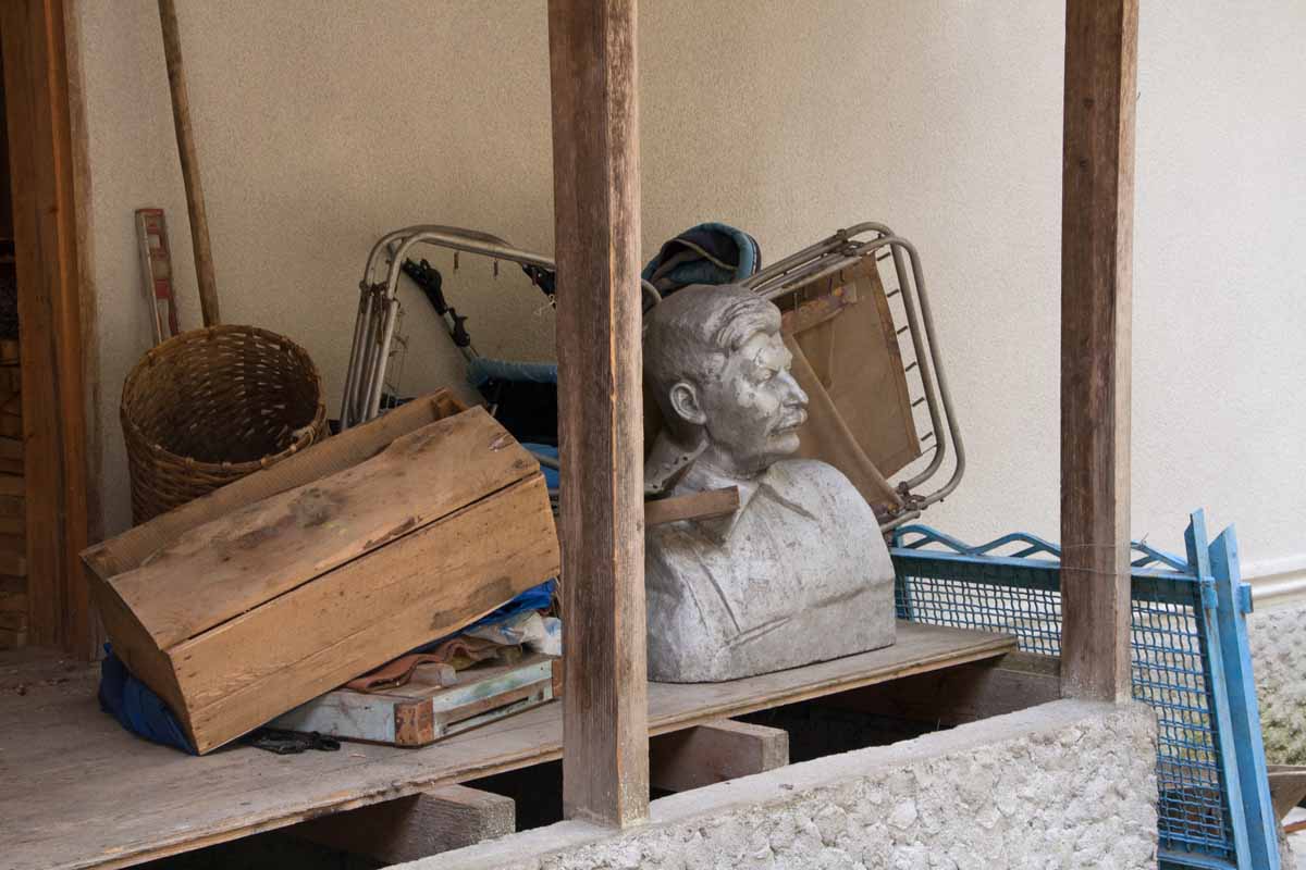 Tijdens de groepsreis door Armenië en Georgië die ik in 2015 maakte, zaten we natuurlijk ook heel wat uurtjes in de bus. En dat was een belevenis op zich. Deze foto’s zijn gemaakt in Georgië en laten een en ander zien van wat je zoal tegenkomt langs de weg (een vergeten kopstuk van Stalin bijvoorbeeld) of óp de weg (varkens en koeien, die zich nooit lijken te haasten).