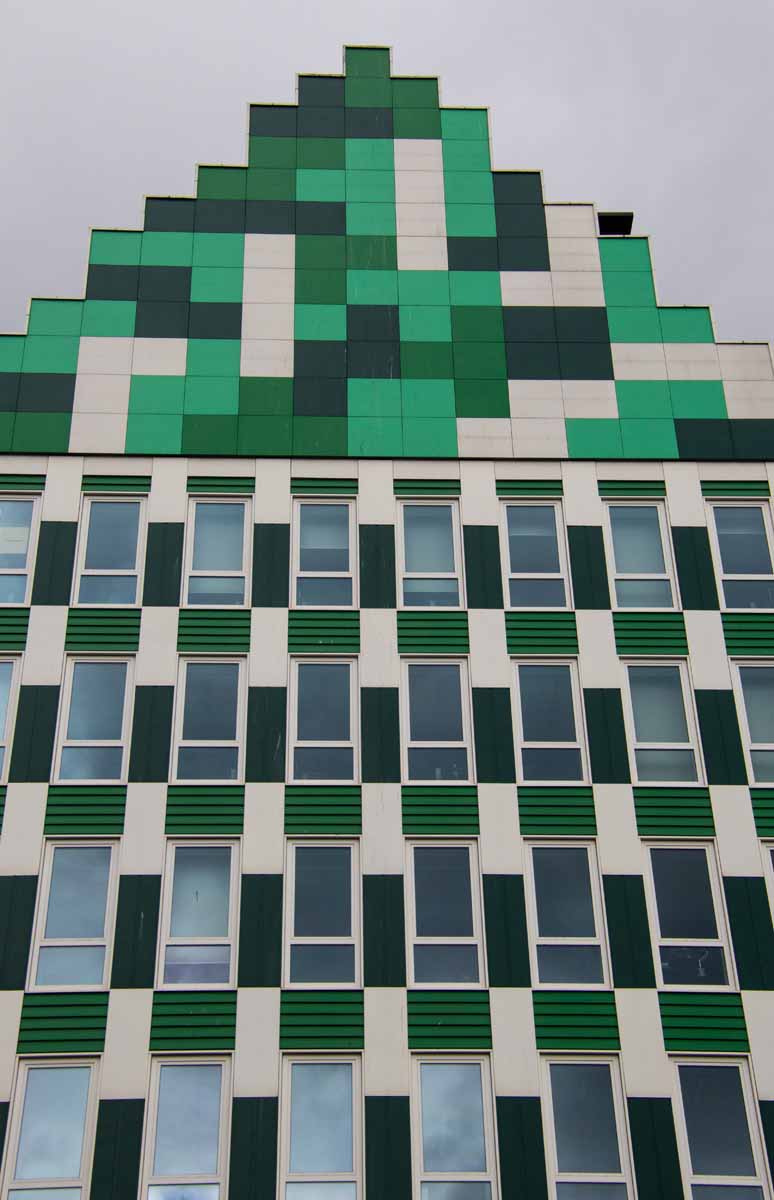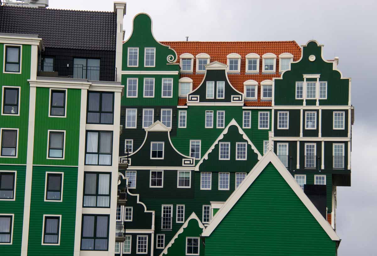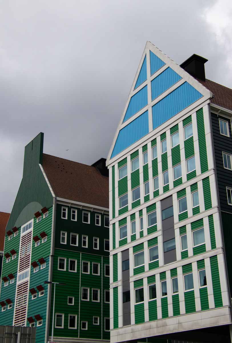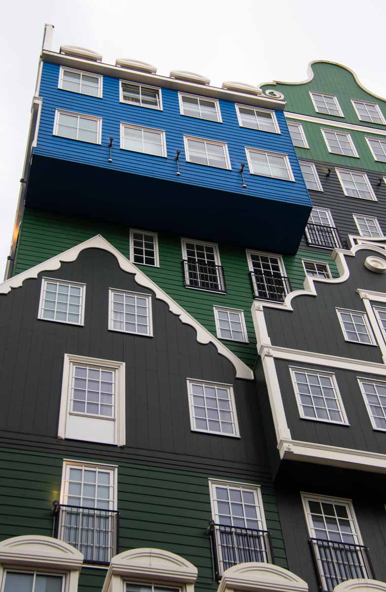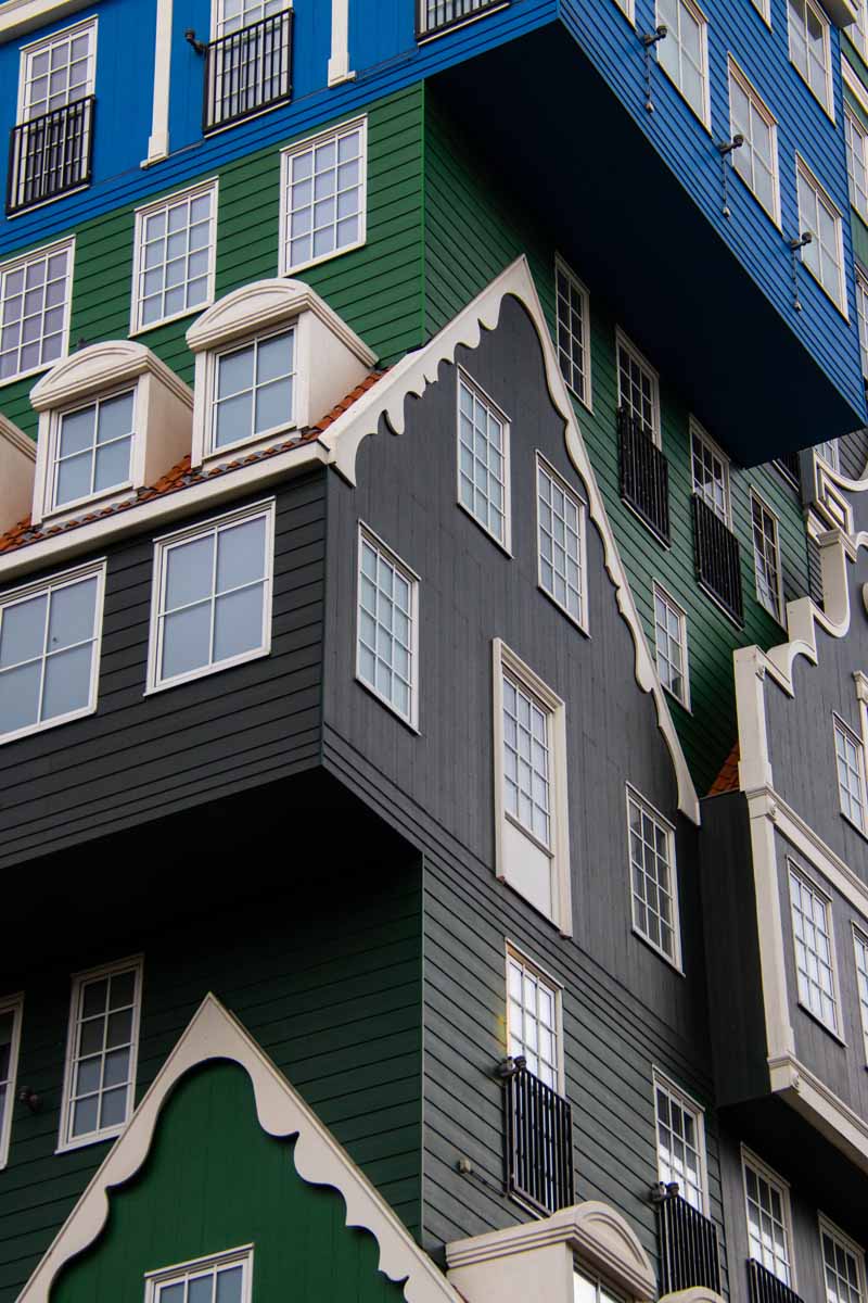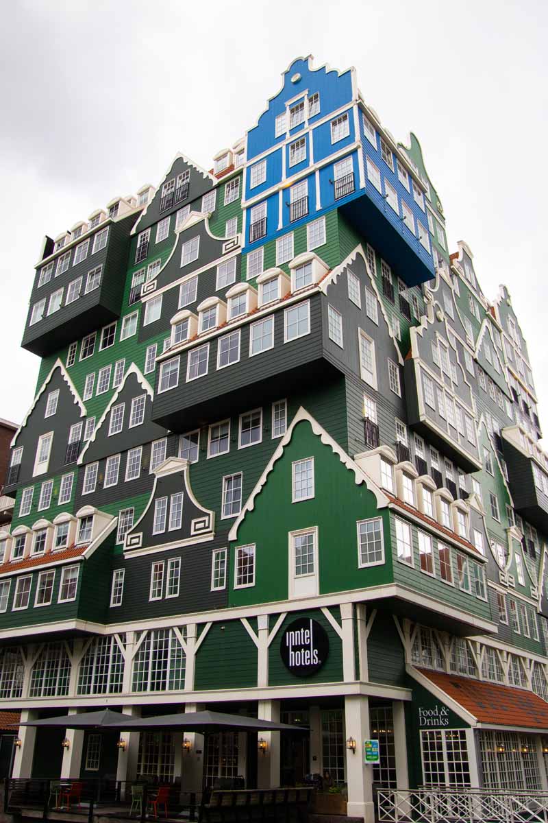 Het Inntel hotel in Zaandam heeft een heel bijzondere vormgeving: het lijkt te bestaan uit een verzameling Zaanse geveltjes. Heel fotogeniek! En ook het nabijgelegen stadhuis past prima in de sfeer, evenals de omliggende panden. Goed bereikbaar met de trein, vanuit het station loop je er zo naar toe!