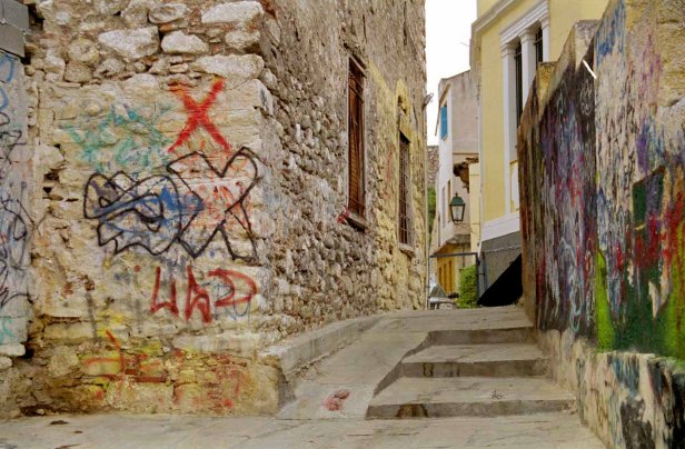 Grafitti, is het nou kunst of vandalisme? Het ligt er natuurlijk aan waar, maar als het mooi gedaan is, vind ik het zeker kunstig… hier in Athene vond ik de beelden niet zo heel erg veel van kunst weg hebben, maar de foto’s die ik er zo van heb gemaakt wel, toch?