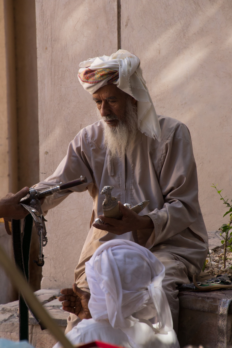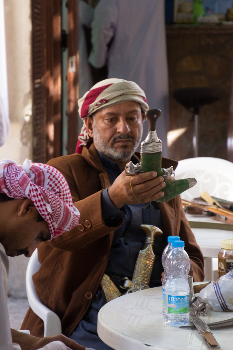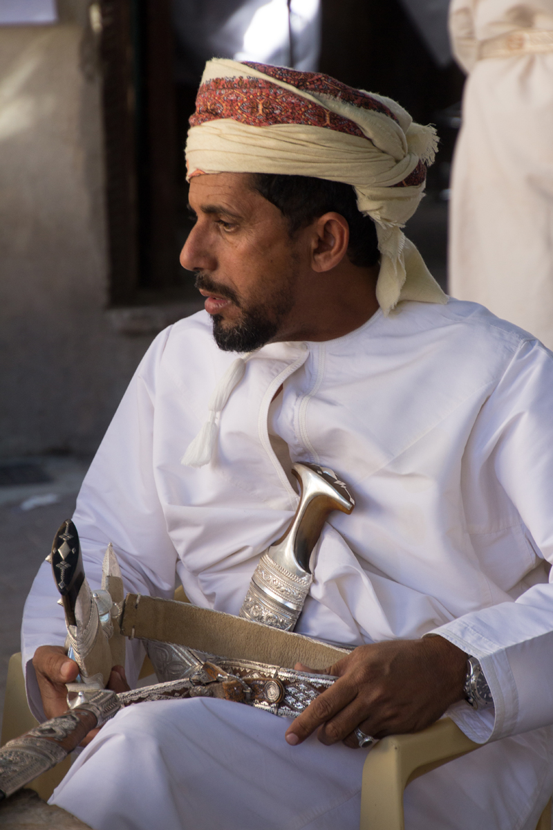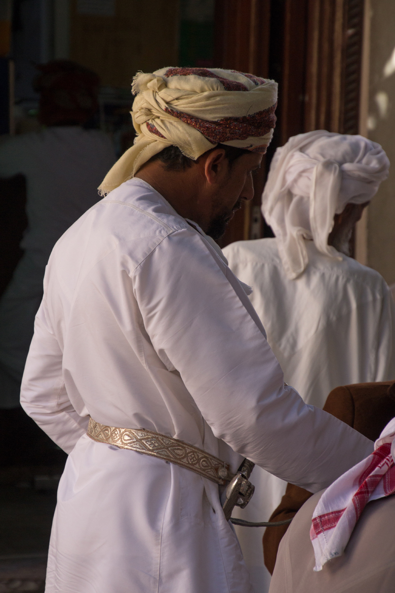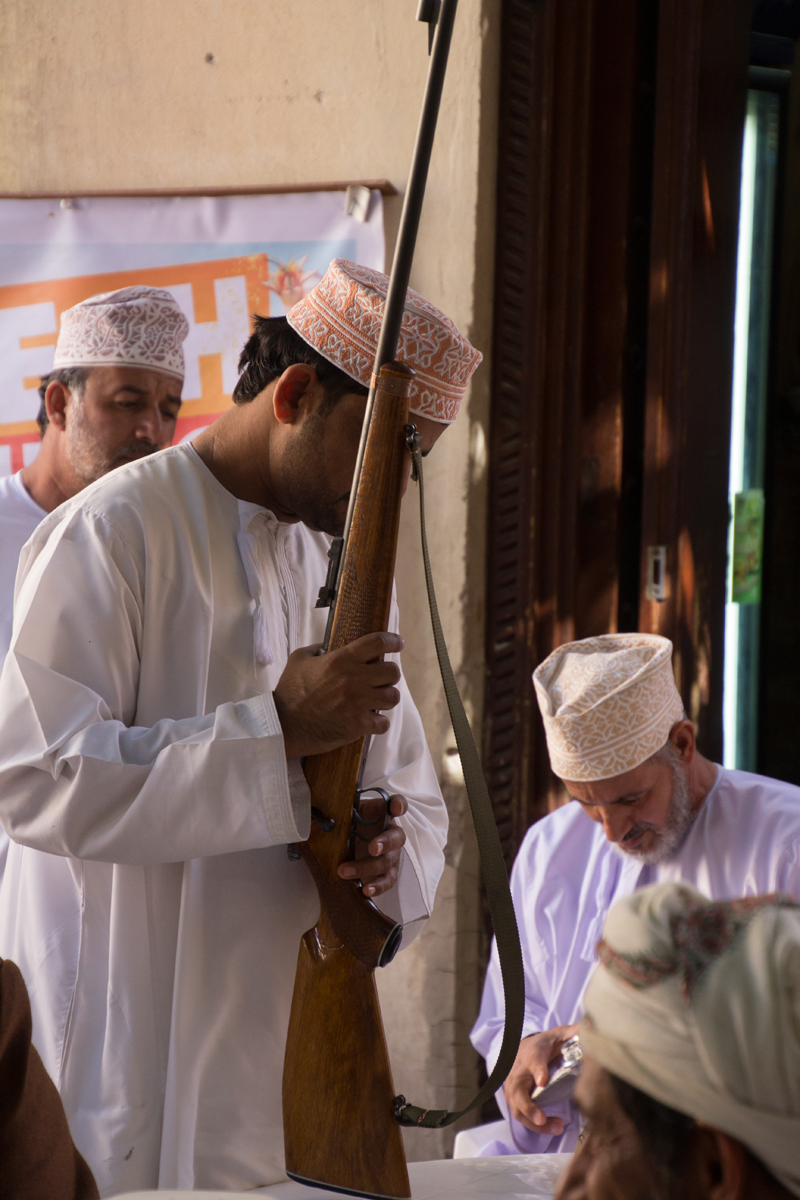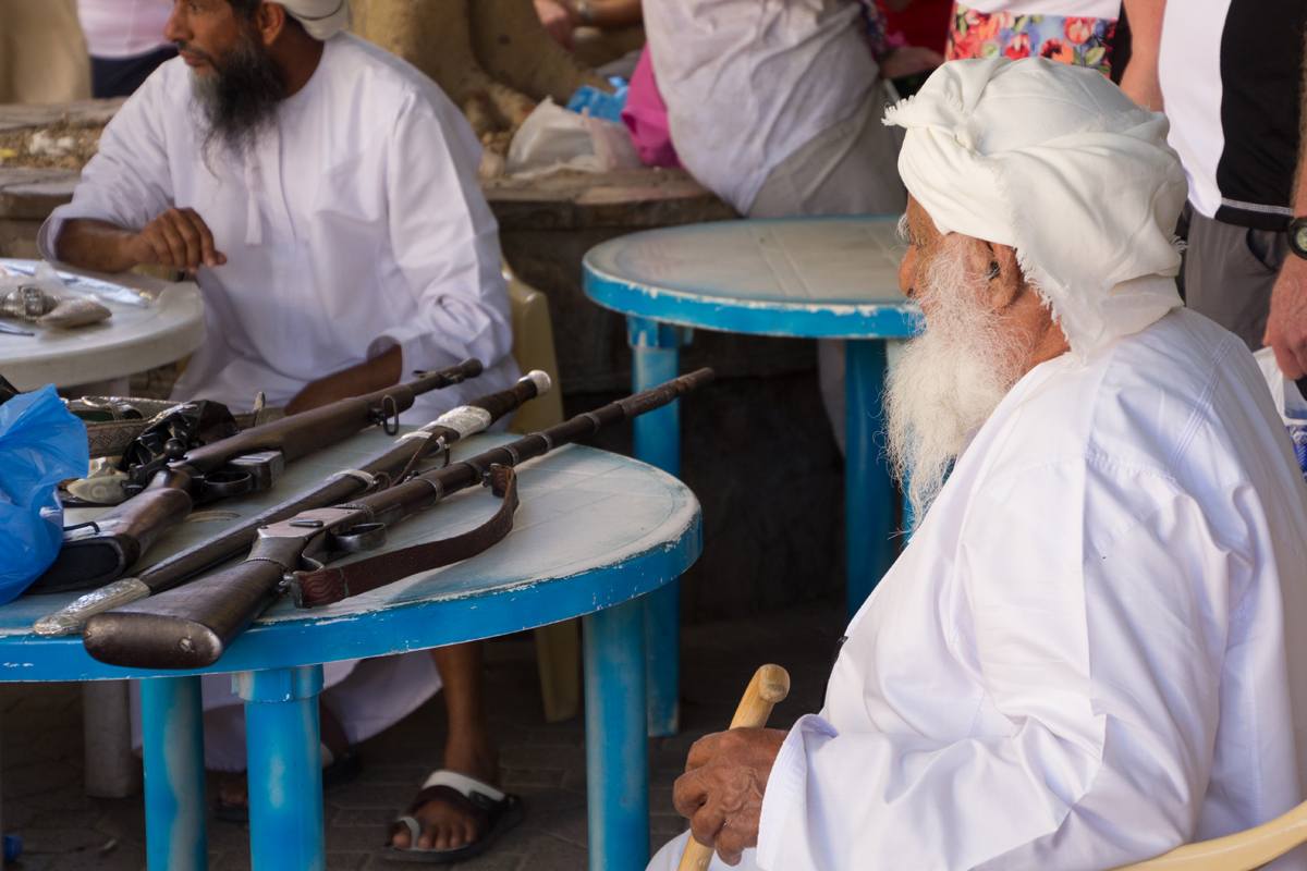Een wel heel bijzondere markt was deze wapenmarkt in Oman, waar de mannen hun sierlijke dolken en andere bijzonder wapentuig kochten. Wel even hopen dat er niet per ongeluk eentje af ging, natuurlijk.