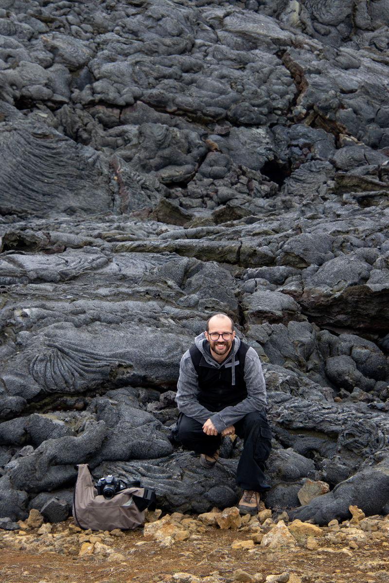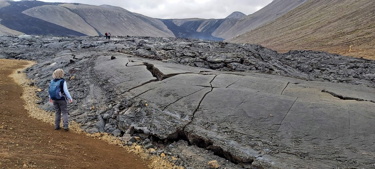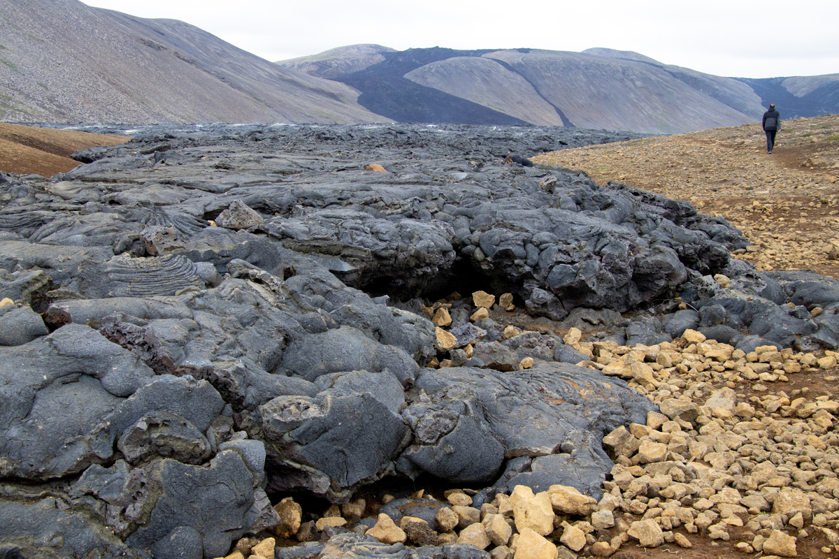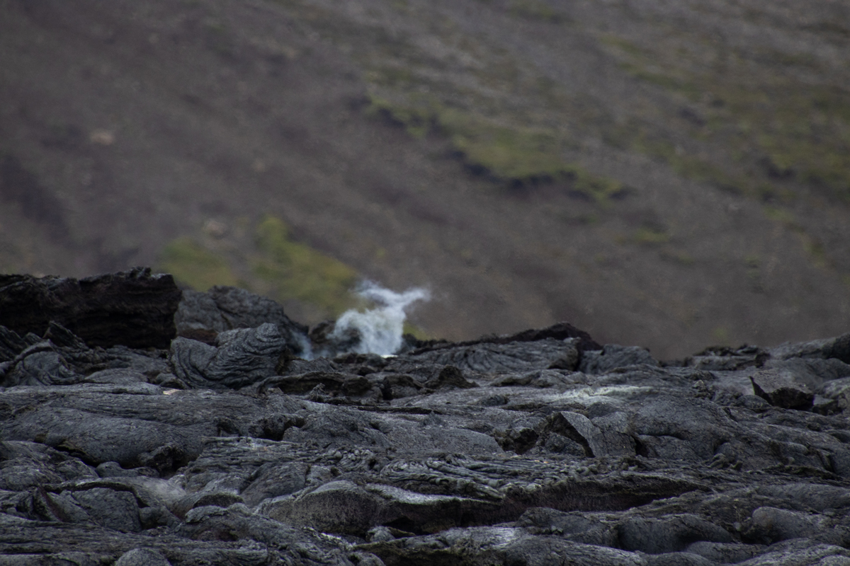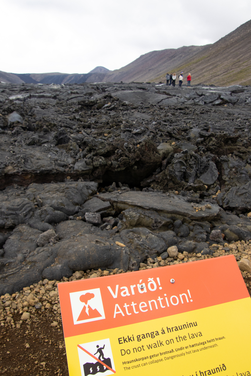 Ongeveer anderhalve week eerder stonden wij aan de rand van de deels nog rokende lava van de vorige uitbarsting (in 2021). Er waren nog geen signalen die er op wezen dat een nieuwe uitbarsting op handen was. We vonden het een bijzonder gezicht, die grote vlakte zwarte lava, met hier en daar een wolkje stoom. Je kon makkelijk dichtbij de randen komen, maar mocht niet op de lavakorst lopen, wat sommige waaghalzen natuurlijk gewoon deden.