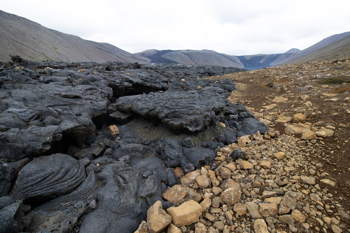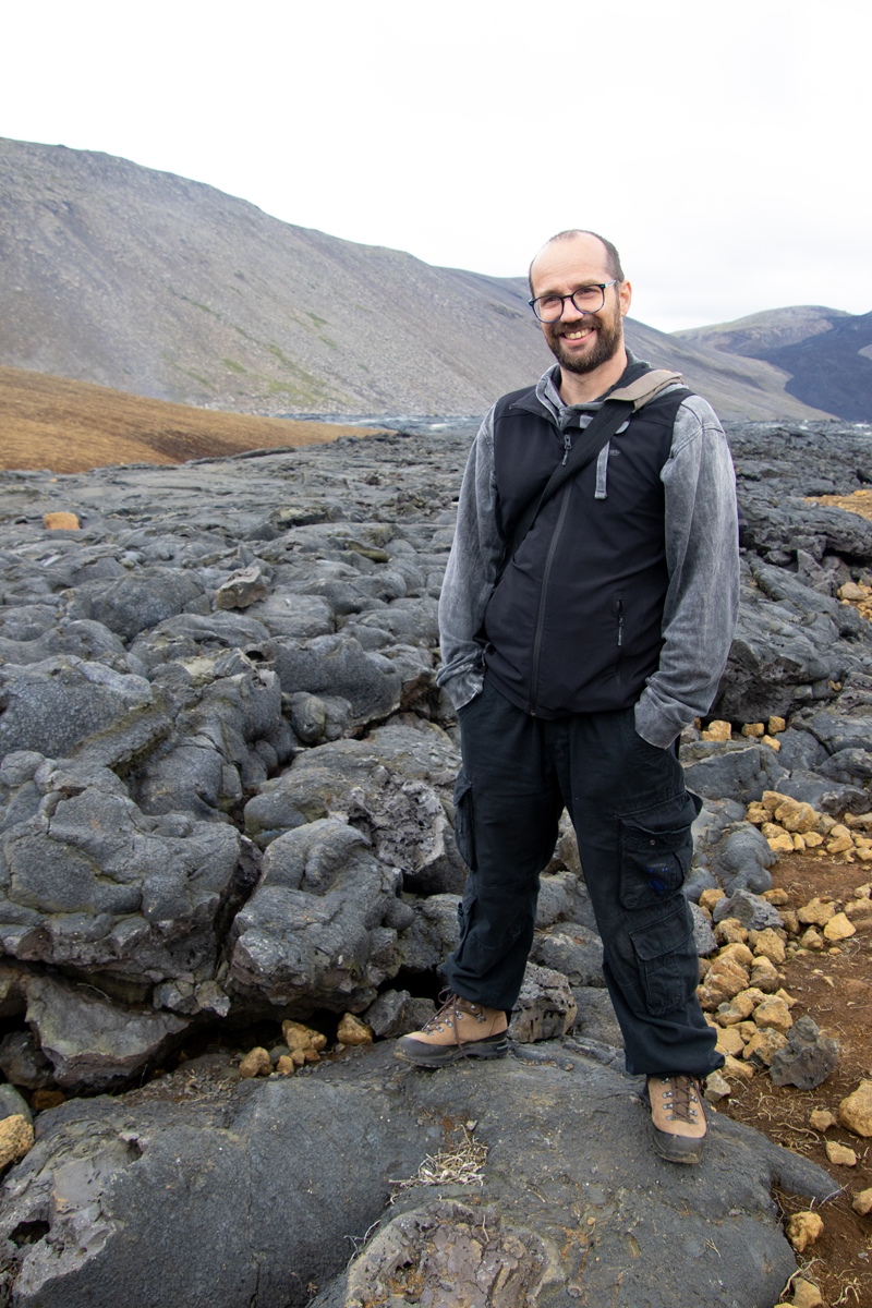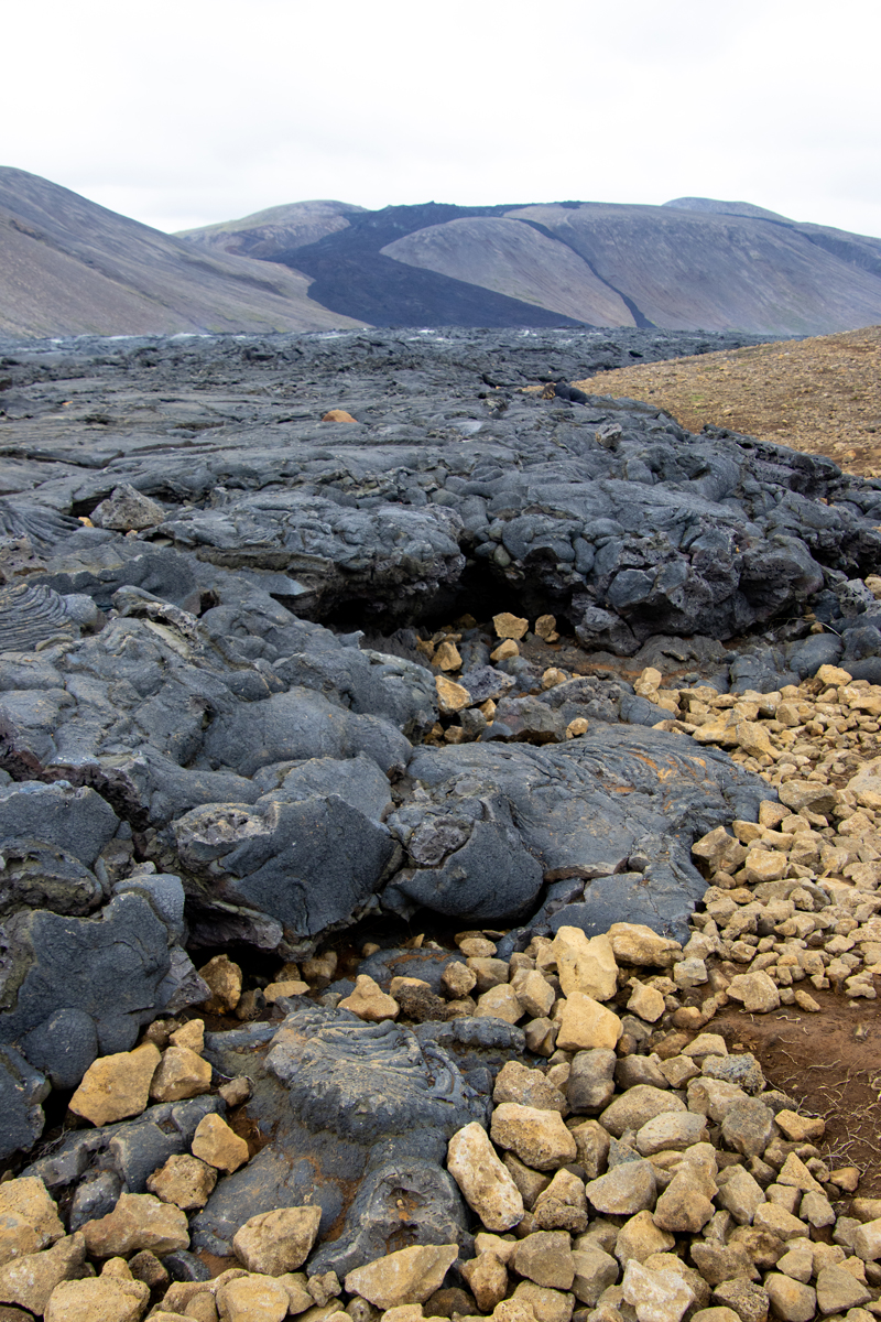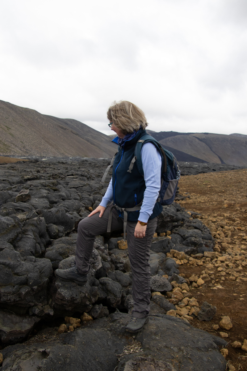 Ongeveer anderhalve week eerder stonden wij aan de rand van de deels nog rokende lava van de vorige uitbarsting (in 2021). Er waren nog geen signalen die er op wezen dat een nieuwe uitbarsting op handen was. We vonden het een bijzonder gezicht, die grote vlakte zwarte lava, met hier en daar een wolkje stoom. Je kon makkelijk dichtbij de randen komen, maar mocht niet op de lavakorst lopen, wat sommige waaghalzen natuurlijk gewoon deden.