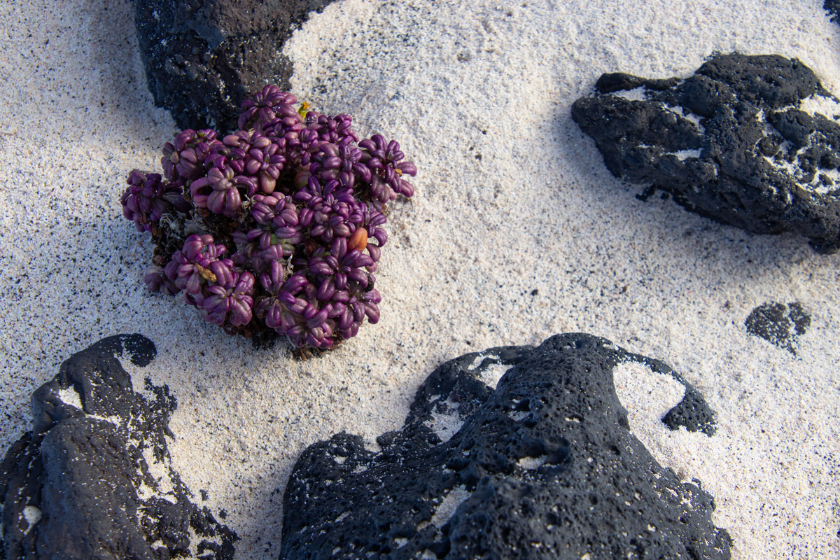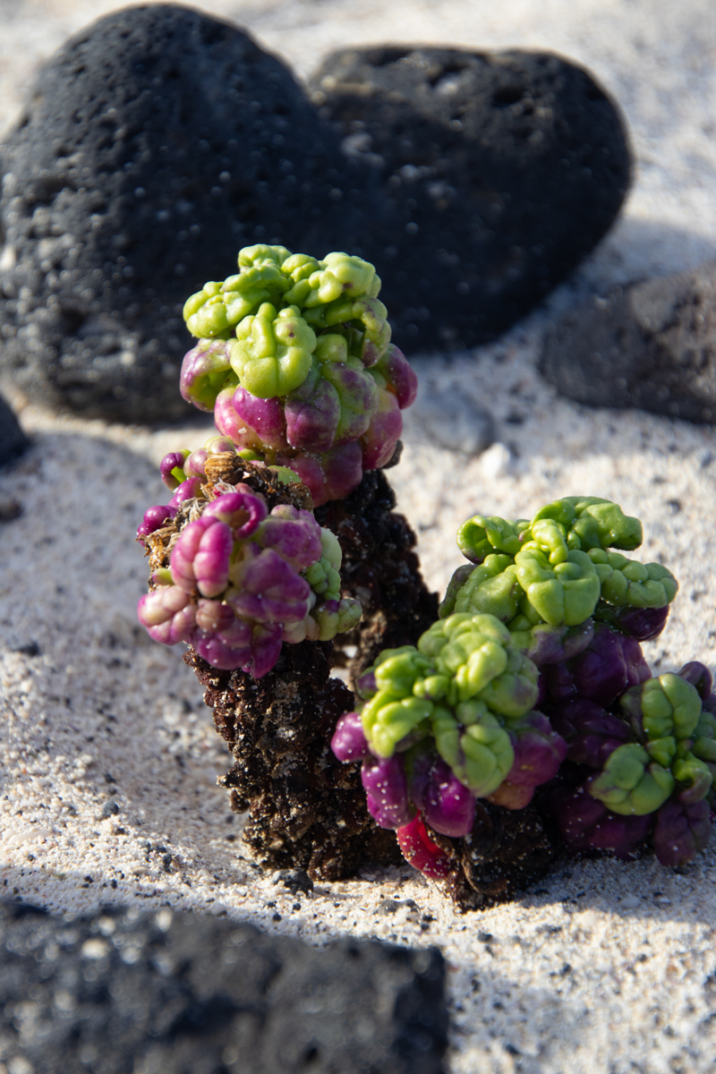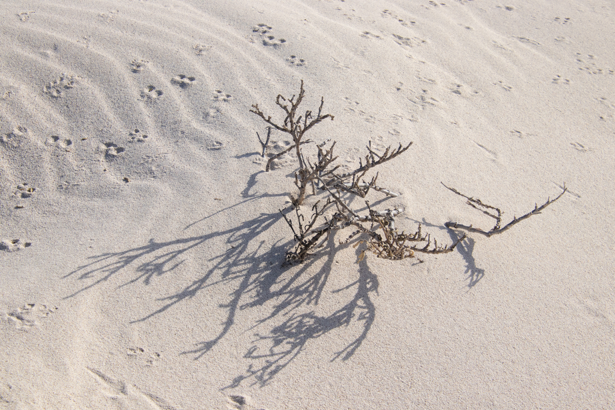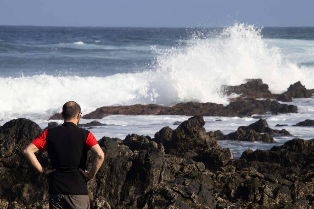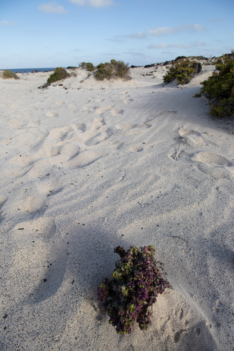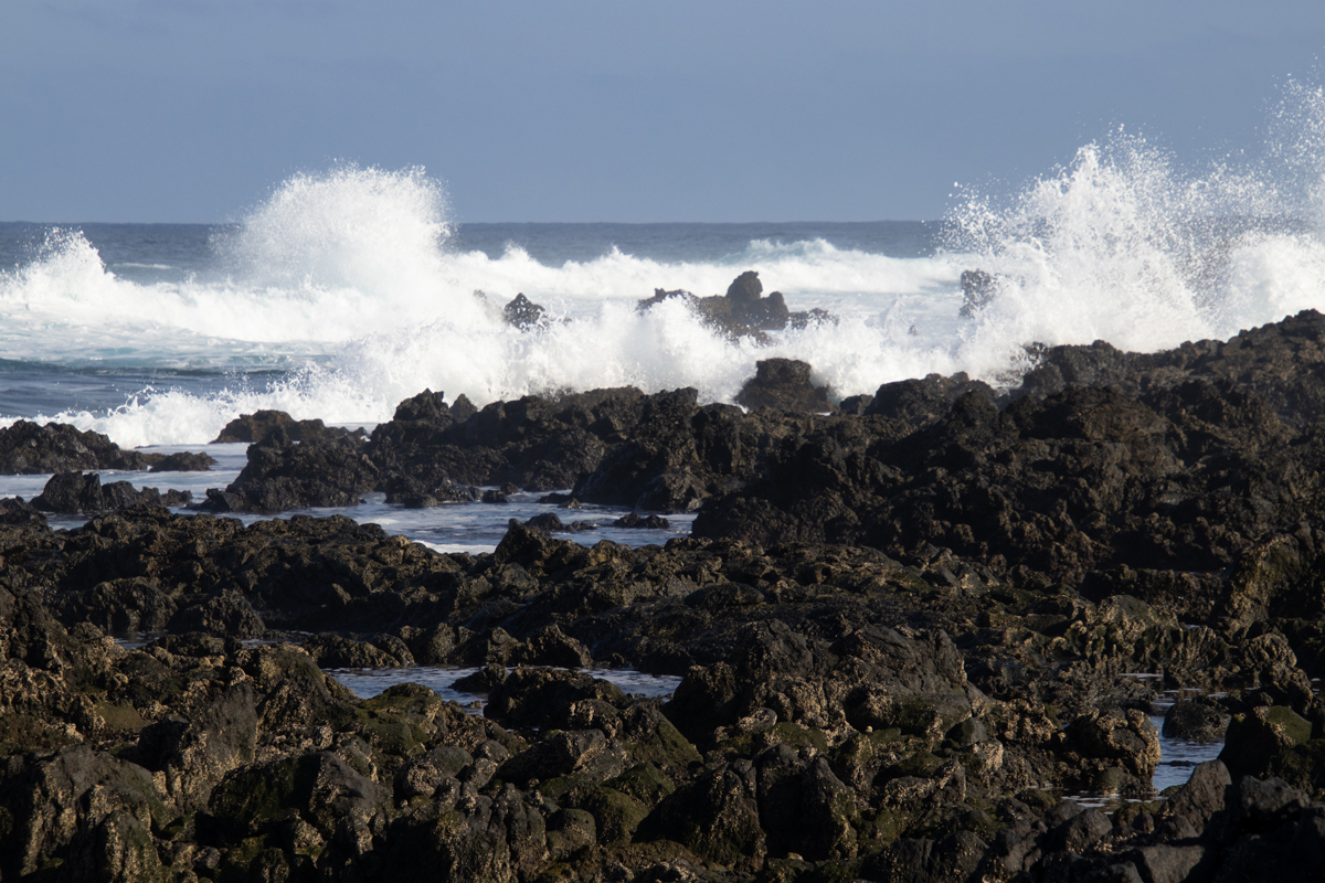 Het eiland Lanzarote is grotendeels bedekt met zwarte lava. Ook de stranden zijn zwart, soms bestaand uit fijn zwart lavazand, soms uit grotere brokken lava. Het is daarom heel verrassend om ineens een wit zandstrandje tegen te komen. Dit strandje, ‘Caleta de mojon blanco’ is niet zo groot, maar wel bijzonder om te zien. Een witte plek tussen al het zwart. De golven zijn er, zoals overal op Lanzarote, spectaculair.