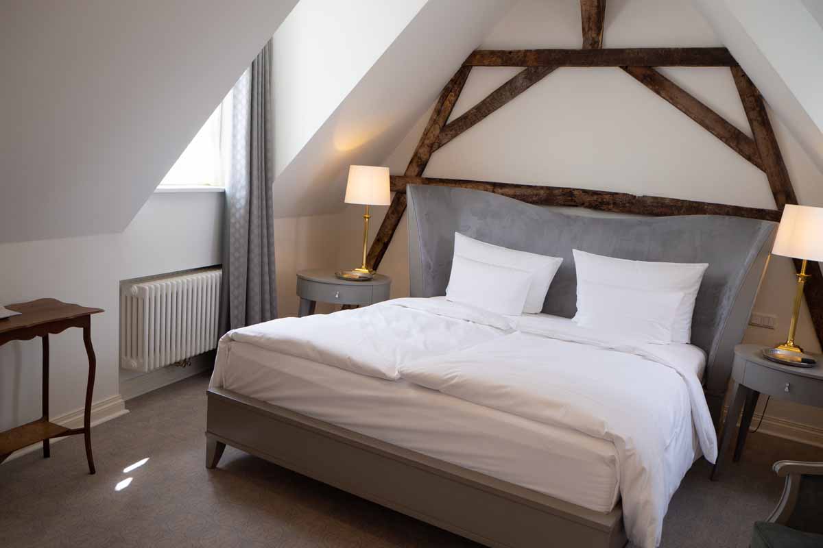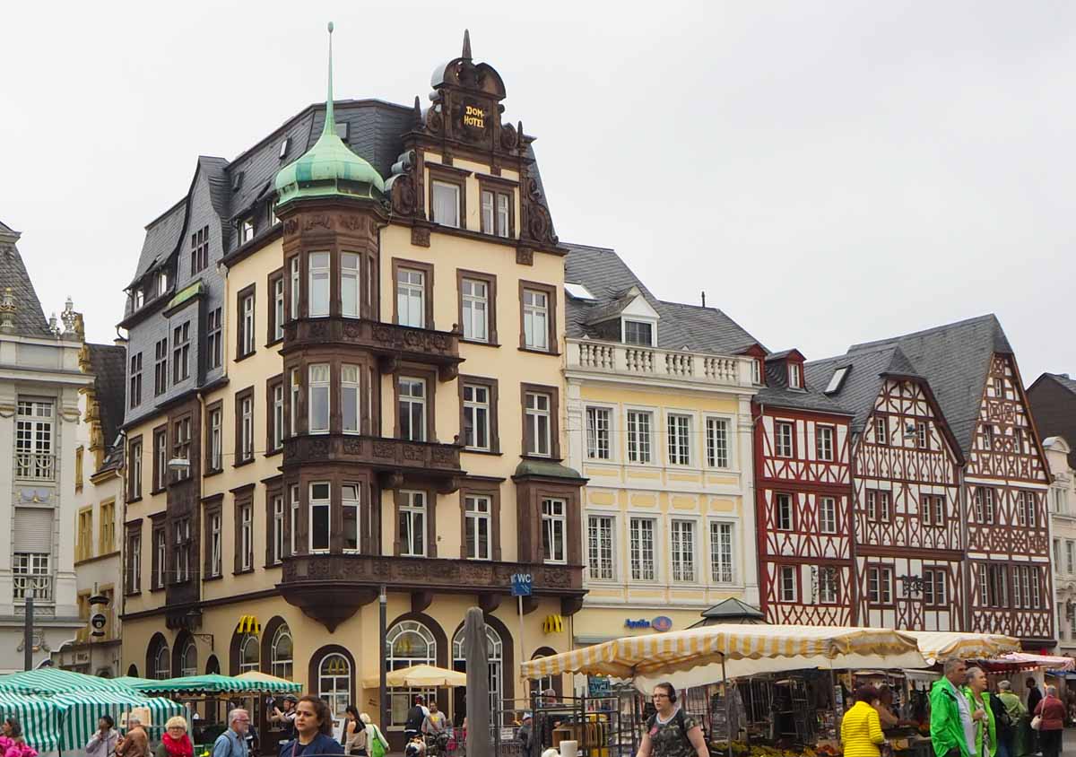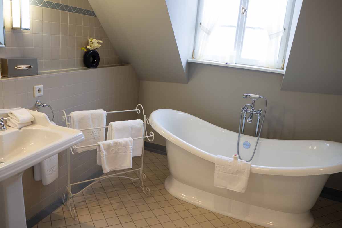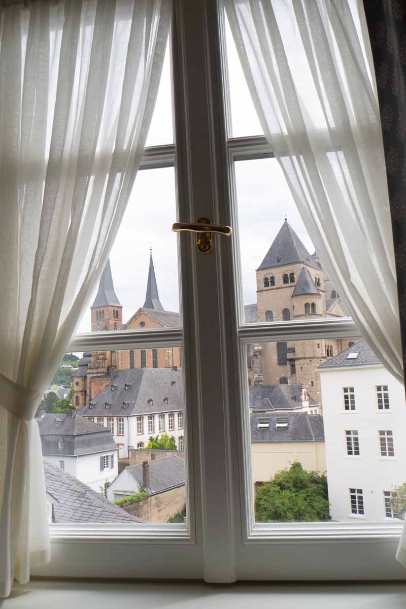 Tijdens onze rondreis door Duitsland in de zomer van 2020, sliepen we twee nachten in Trier. Een mooie stad, maar we waren er beiden al een keer geweest, dus we hebben niet heel lang doorgelopen in de regen. We hadden namelijk ook een echt práchtige hotelkamer om zonder regen van te genieten. Gelegen in het torentje van het hotel, met een eigen opgang via een houten wenteltrap en een heerlijk ouderwets sierlijk bad!