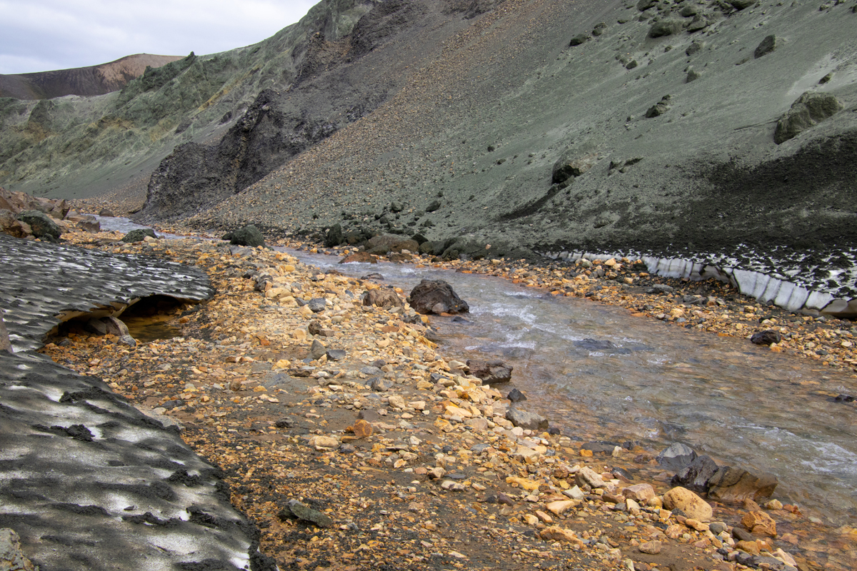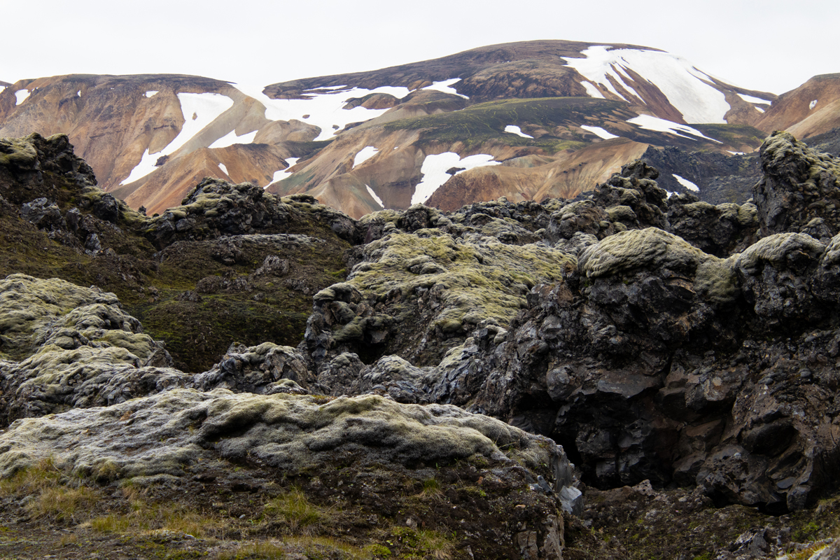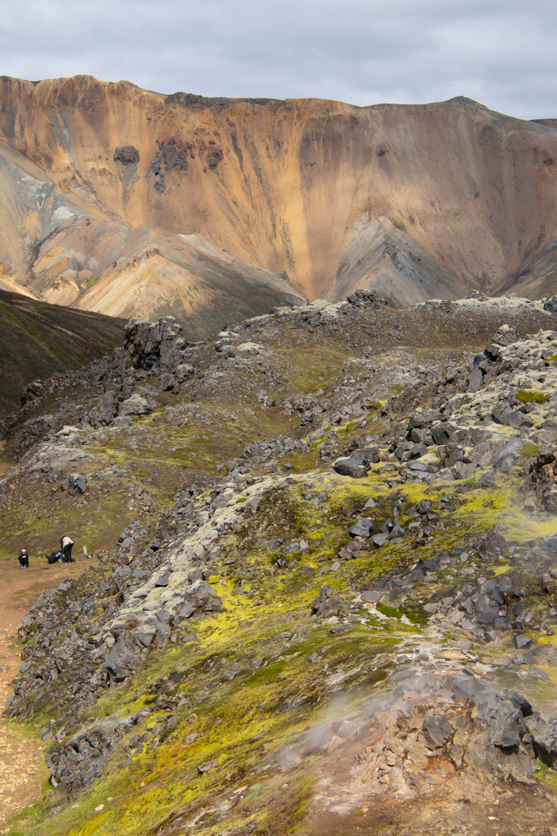Deze zomer waren we op huwelijksreis in IJsland. Ik was er al twee keer geweest en had al veel moois gezien, maar zoals dat gaat, heb je dan een verlanglijst van wat je nog wil zien. Een van die dingen was het natuurgebied Landmannalaugar. Een prachtig gebied met oranje, bruin en soms groen gekleurde ryolietbergen. Dat in combinatie met plekjes sneeuw en rivieren maakt het tot een heel bijzonder stukje IJsland. Omdat het moeilijk te bereiken is, alleen in de zomer en dan ook nog alleen met een fourwheeldrive, boekten we een excursie. Met een kleine bus met heel grote wielen reden we in een paar uur naar het gebied, waar we onder begeleiding van de gids een wandeling maakten. En daarna weer terug, uiteraard. Een hele dagtocht dus, heel vermoeiend, maar absoluut de moeite waard. Deze foto’s zijn gemaakt tijdens de wandeling.