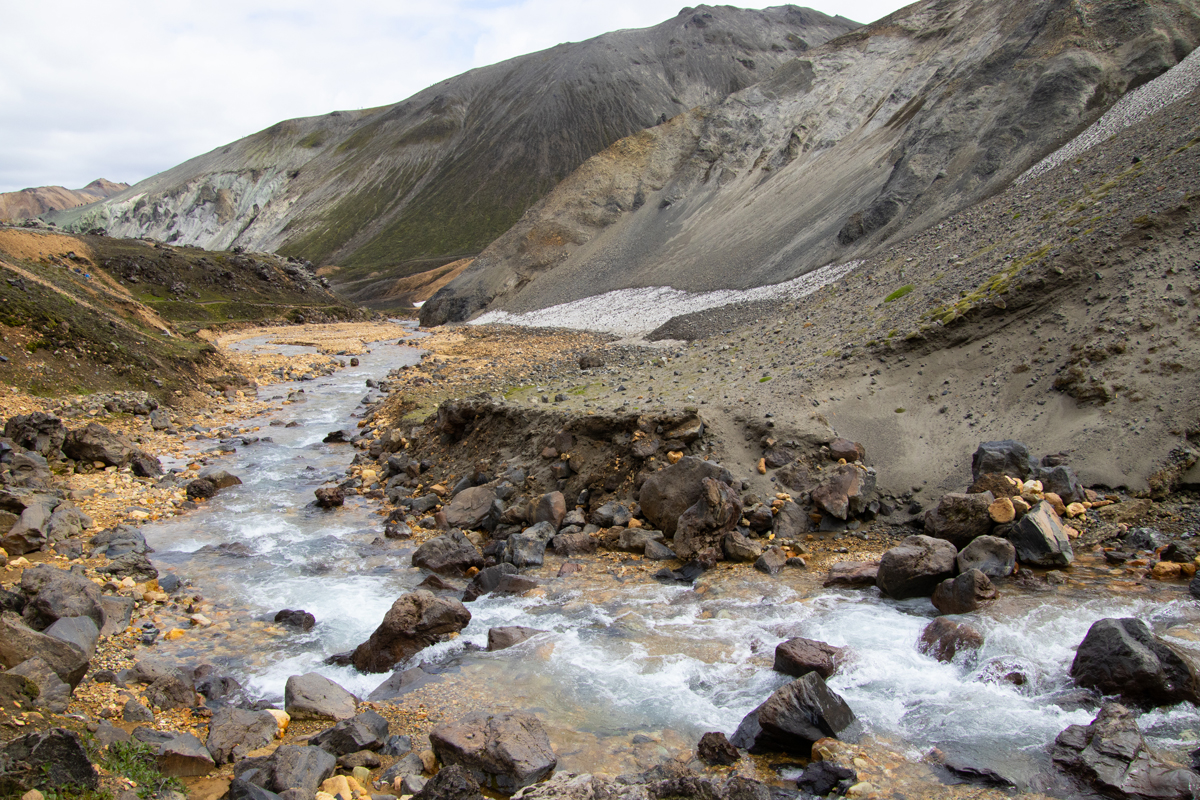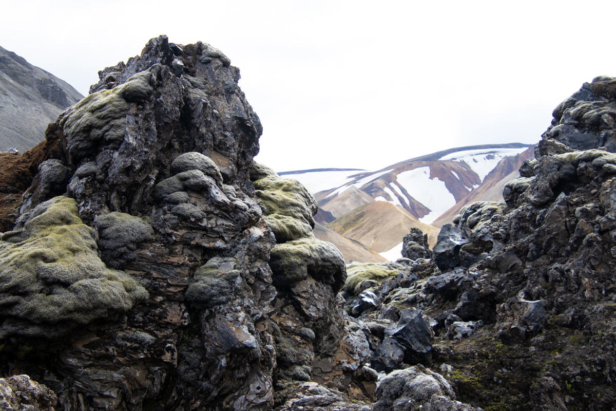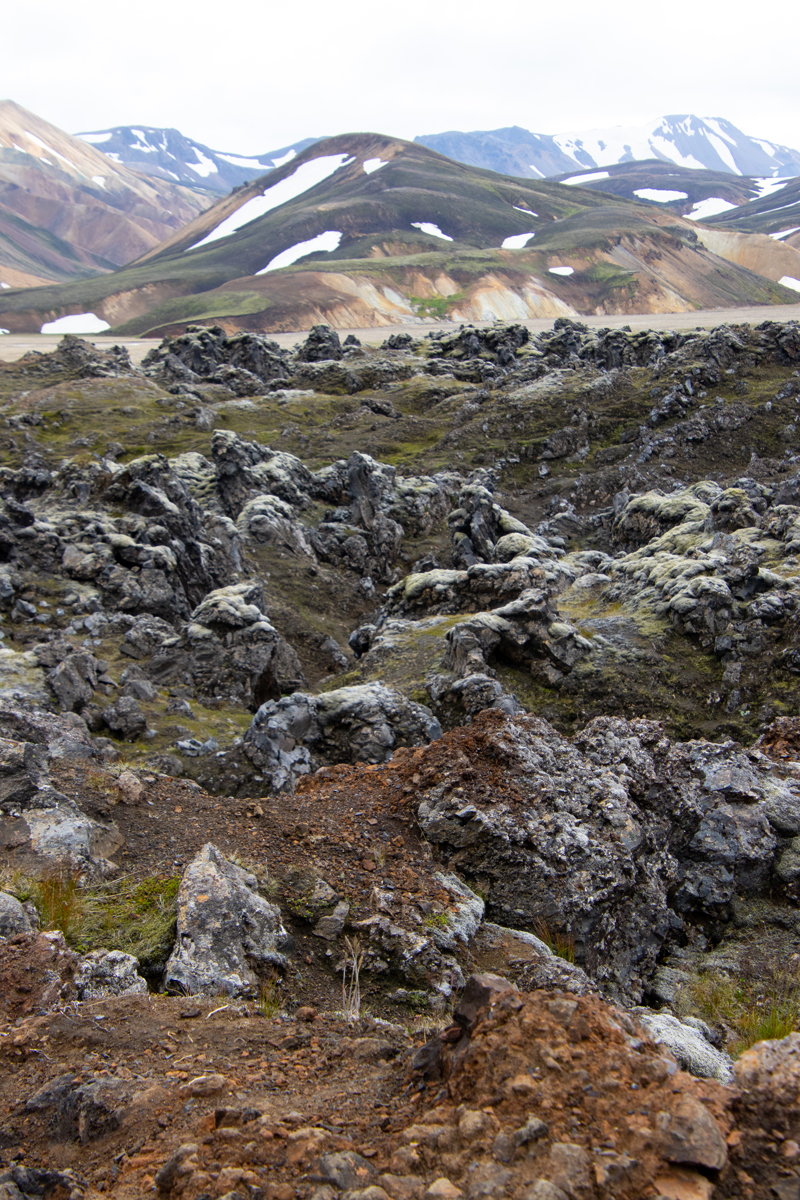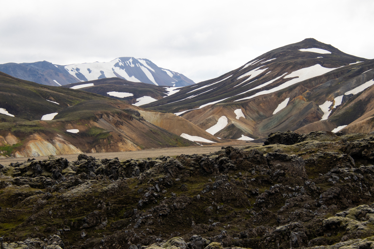 Deze zomer waren we op huwelijksreis in IJsland. Ik was er al twee keer geweest en had al veel moois gezien, maar zoals dat gaat, heb je dan een verlanglijst van wat je nog wil zien. Een van die dingen was het natuurgebied Landmannalaugar. Een prachtig gebied met oranje, bruin en soms groen gekleurde ryolietbergen. Dat in combinatie met plekjes sneeuw en rivieren maakt het tot een heel bijzonder stukje IJsland. Omdat het moeilijk te bereiken is, alleen in de zomer en dan ook nog alleen met een fourwheeldrive, boekten we een excursie. Met een kleine bus met heel grote wielen reden we in een paar uur naar het gebied, waar we onder begeleiding van de gids een wandeling maakten. En daarna weer terug, uiteraard. Een hele dagtocht dus, heel vermoeiend, maar absoluut de moeite waard. Deze foto’s zijn gemaakt tijdens de wandeling.