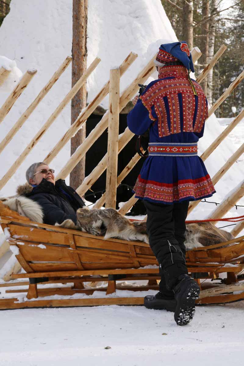 De Samen of Sami zijn een nomadenvolk dat met hun rendieren rondtrekt in Lapland of Sápmi, zoals het in hun eigen taal heet. Sápmi omvat het noordelijk deel van Rusland, Finland, Zweden en Noorwegen en doorkruist daarmee de huidige grenzen. Het is voor hen niet altijd gemakkelijk om hun levenswijze te handhaven, maar ze slagen er tot op de dag van vandaag in om met hun rendieren van en in de natuur te leven. Ik zag een paar Sami in traditionele kleding in Fins Lapland. In een souvenirwinkel zag ik voorbeelden van sami trommels, die oorspronkelijk door sjamanen werden gebruikt om contact te leggen met de goden. Helaas zijn er nog maar weinig authentieke trommels te vinden, omdat de missionarissen die vanaf de 9e eeuw het gebied begonnen te kerstenen de trommels zagen als instrumenten van de duivel. Vele instrumenten werden daarom verbrand.