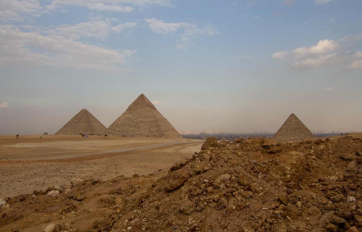 Wie aan Egypte denkt, denkt aan de piramides van Gizeh. Dat was ook de belangrijkste reden voor ons om het land te bezoeken. Voor mij was het de tweede keer dat ik aan de voet van deze oeroude, mysterieuze bouwwerken stond. Echt heel mooi zijn ze misschien niet eens, maar wel uniek in de wereld. Behalve de gebouwen zelf, is het ook een hele ervaring om te kijken naar alles wat er om heen gebeurt. Toeristen, souvenirverkopers, paardenkarren… alles loopt door elkaar, met aan de ene kant de drie grote piramides en aan de andere kant uitzicht op Caïro.