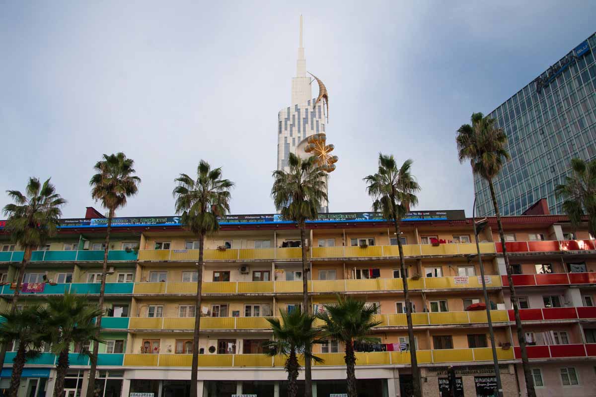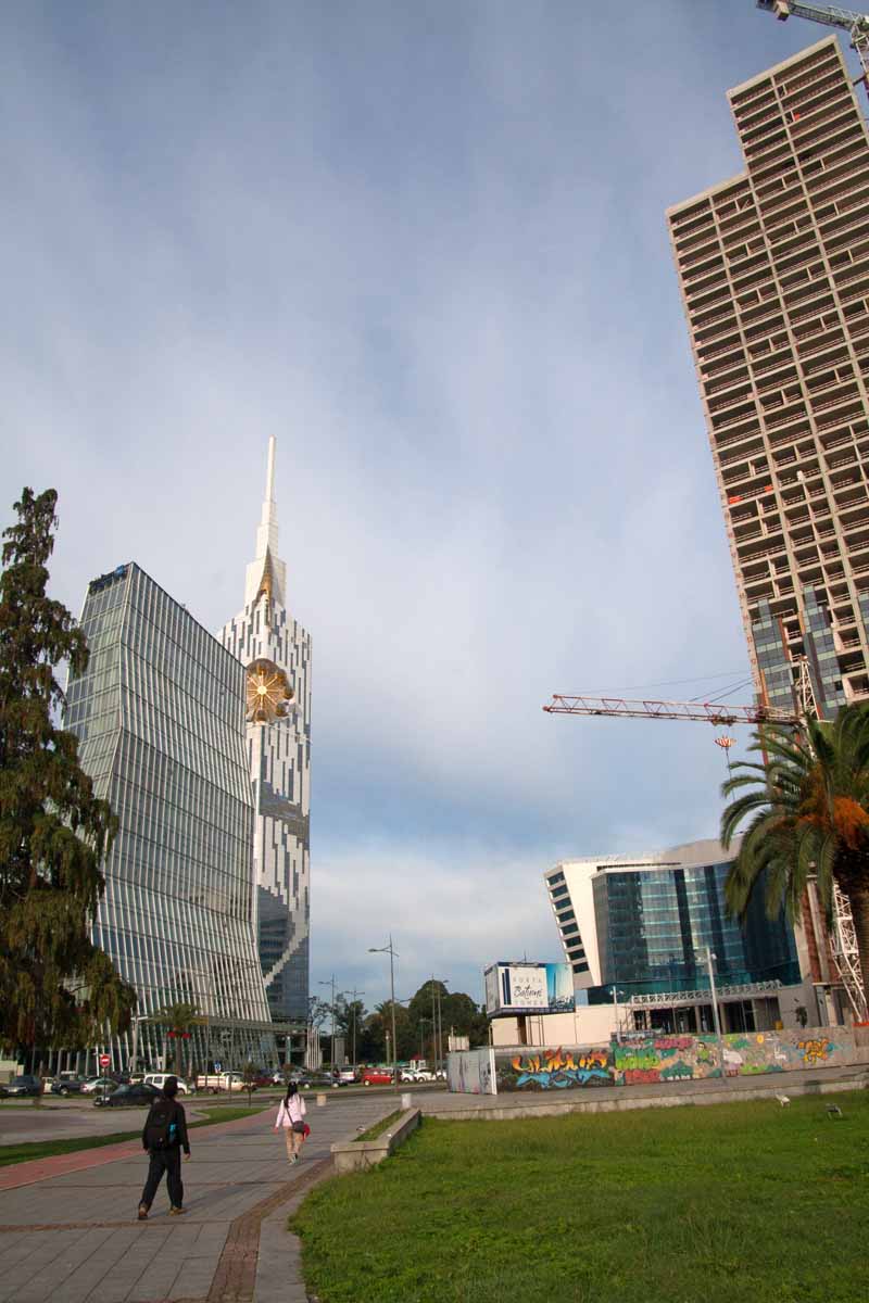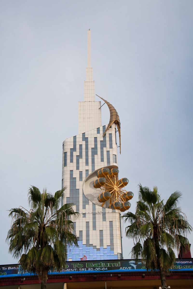 Het Georgische Batumi heeft een historische binnenstad, maar aan de waterkant vind je ook enkele heel futuristisch ontworpen gebouwen, inclusief een soort wodkafontein (in Georgië chacha genoemd). Deze was niet operationeel op het moment dat ik er was, zoals je op de foto hierboven kunt zien, maar anders had ik het ook even aan me voorbij laten gaan, denk ik.