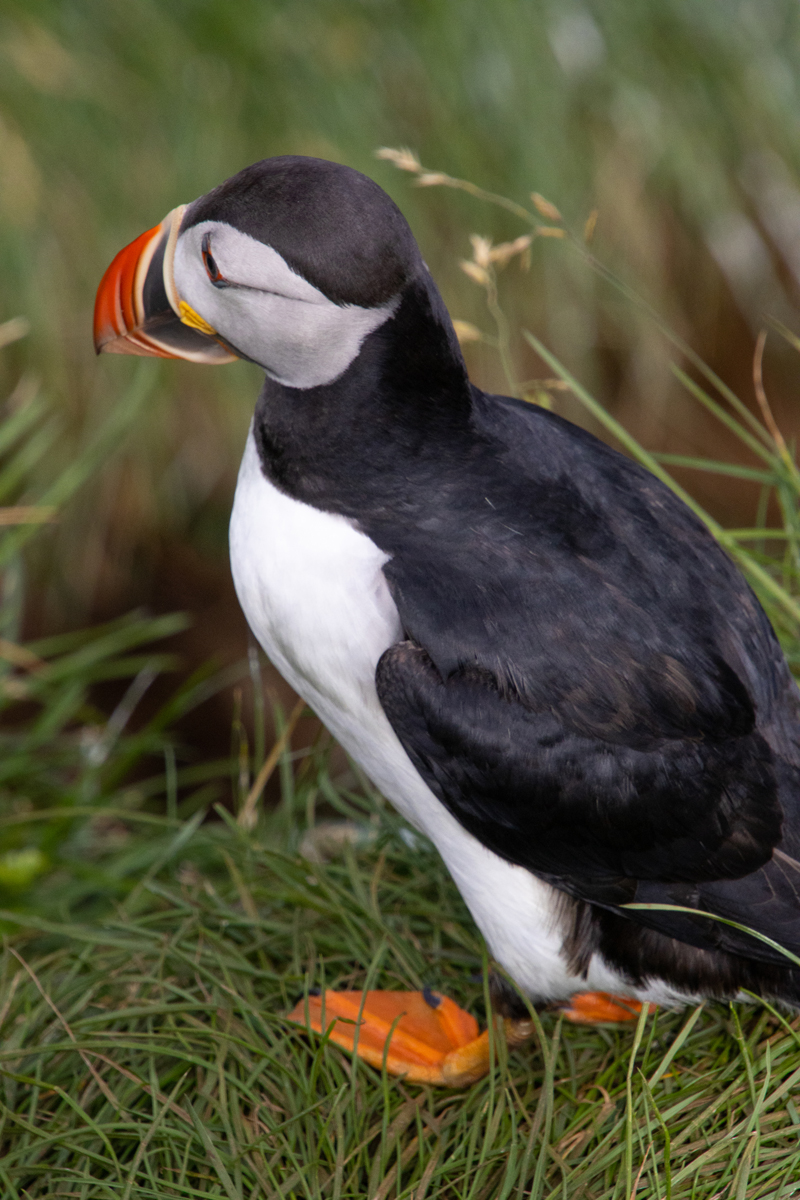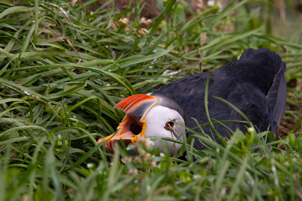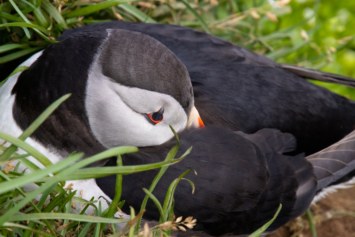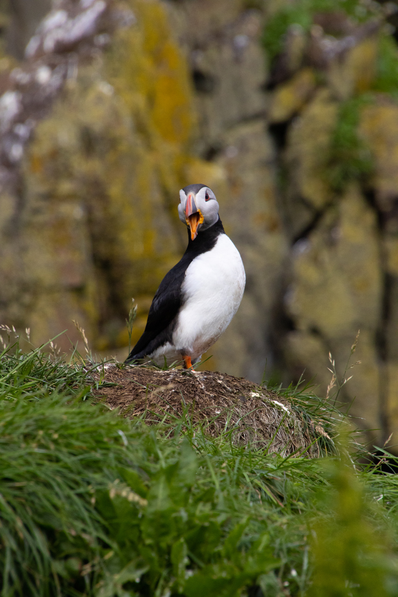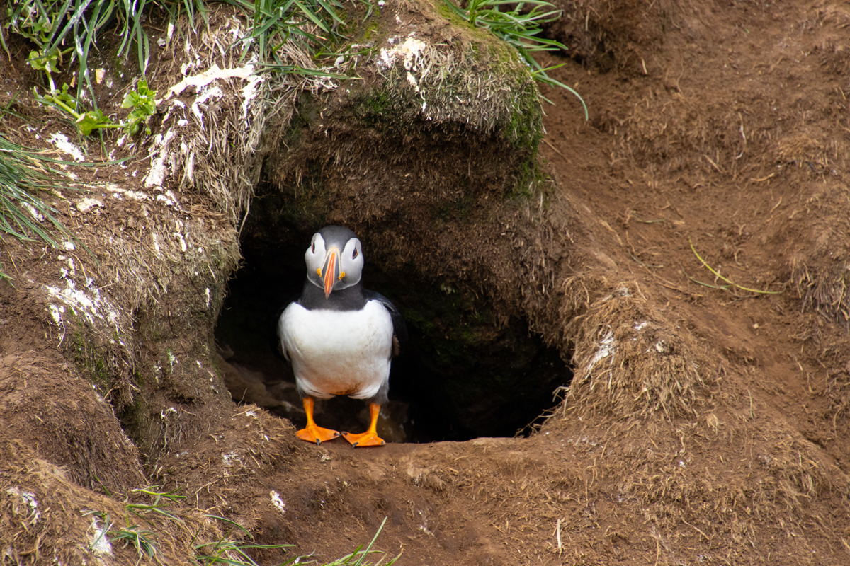 Toen ik in 2000 door IJsland reisde, maakte ik voor het eerst kennis met ze: de papegaaiduikers. Of, hoe ze in het Engels heten: puffins! Een veel leukere naam wat mij betreft, die goed past bij deze koddige vliegende clowntjes. Toen had ik nog geen lens waarmee ik wat kon inzoomen, dus foto’s kon ik niet maken. Dat bleef nog een item op de bucketlist. Dus toen Carlo en ik afgelopen zomer op huwelijksreis naar IJsland gingen, was dat een van mijn wensen: een mooie close up van een puffin maken. Nou, dat is gelukt hoor. Wij bezochten een rots bij Borgarfjordur, helemaal vol met nestelende papagaaiduikers. Geweldig om te zien!