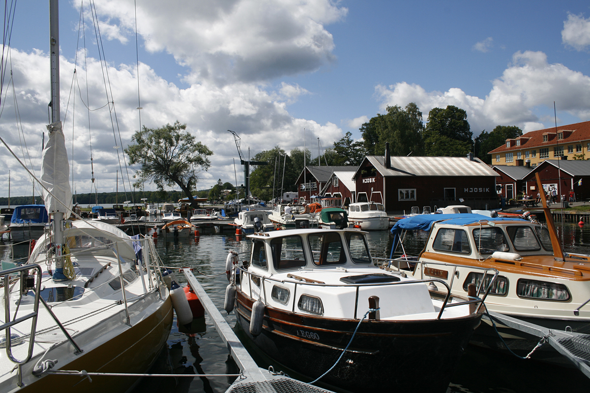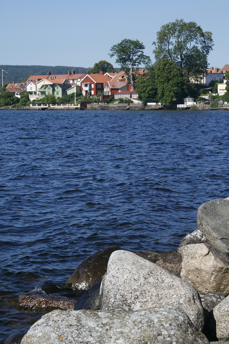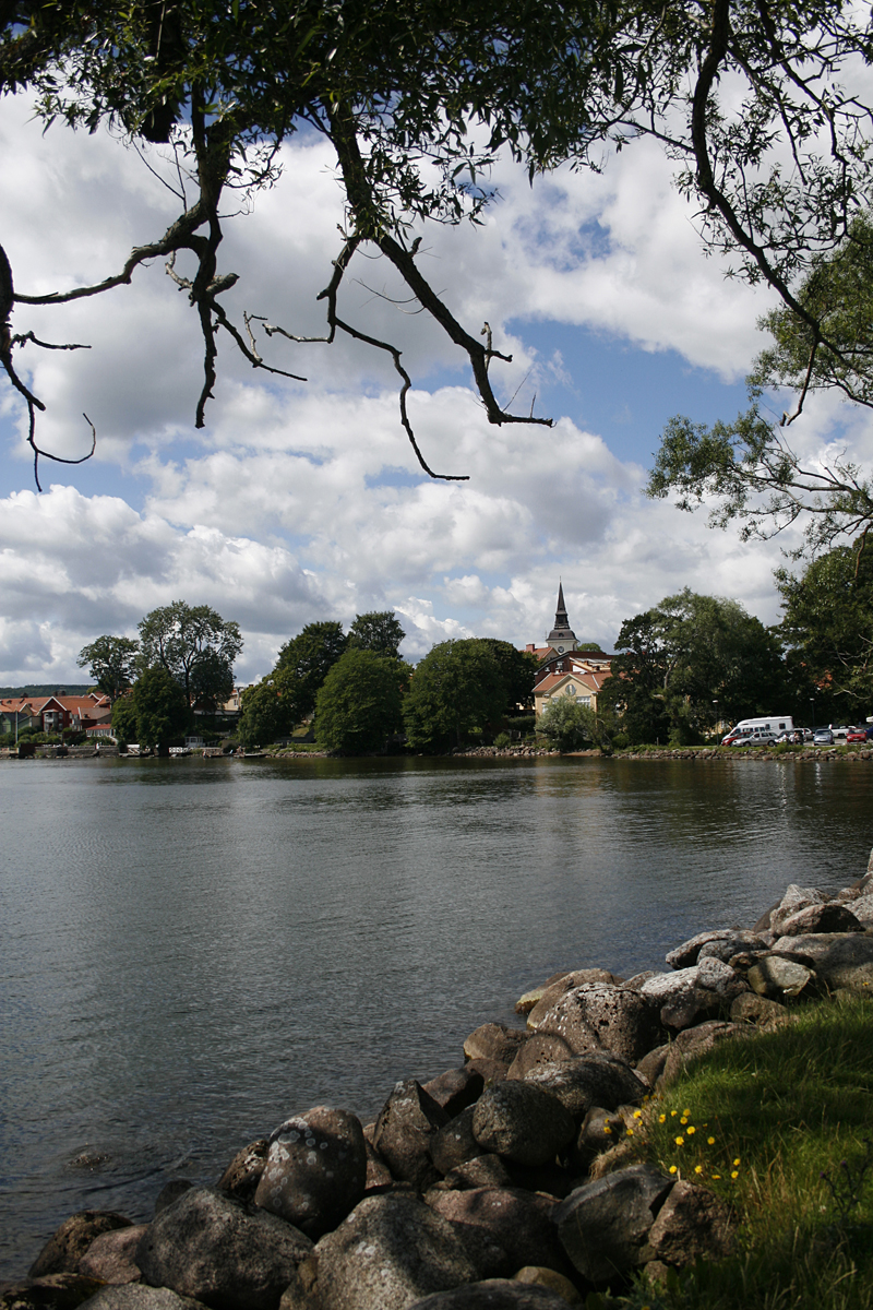 ‘Hjo’ spreek je uit zoals het Engelse ‘you’. De uitspraak I love Hjo is daarom dubbelzinnig, vast de reden waarom je vroeger overal hartvormige stickers kon kopen met deze zin – volgens mij heb ik er nog ergens een, ooit bewaard om een keer op de auto te plakken, zoals mijn vader dat vroeger deed. Want Hjo was ons favoriete stadje in Zweden. Waarom weet ik niet precies, het is inderdaad leuk en lieflijk, maar er zijn meer zulke plaatsjes. Maar toch, een dierbare herinnering. Extra leuk om er in 2008 samen met een vriendin nog eens terug te komen.
