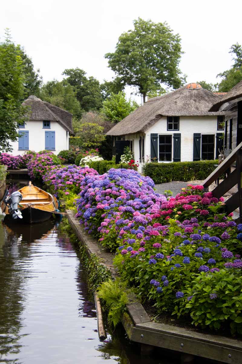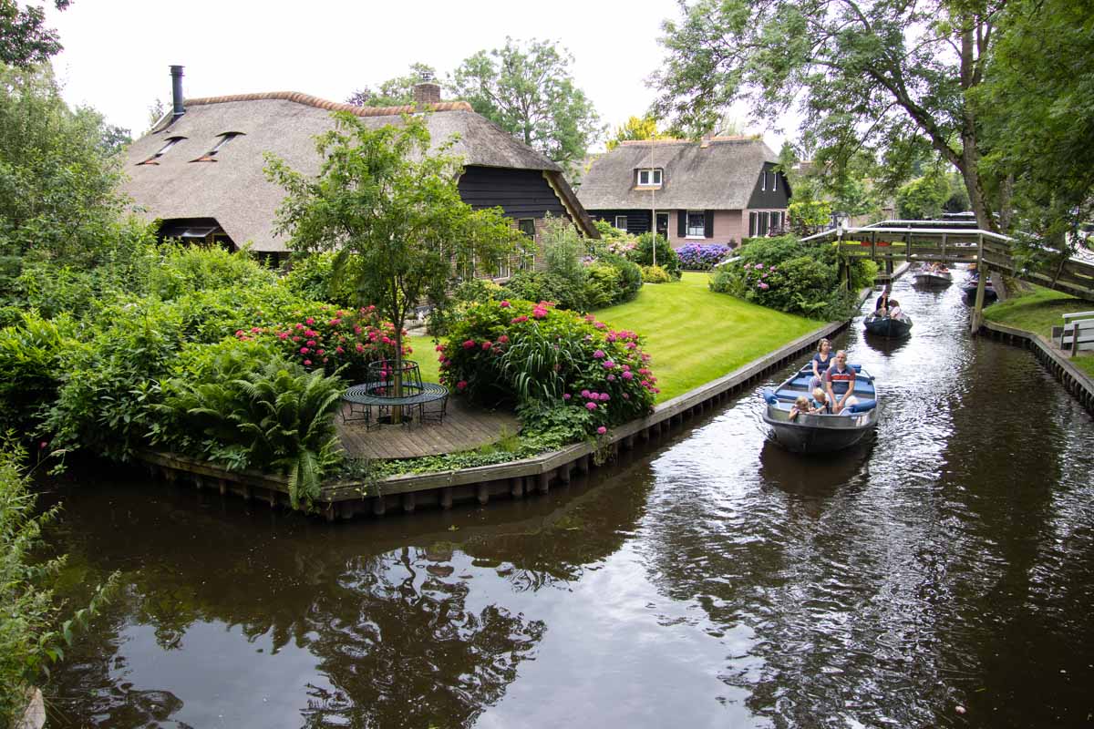 In de zomer van 2021 maakten we vanwege corona een rondreis door ons eigen land. We kozen een route door het Noordelijk deel van Nederland. Op weg naar onze eerste bestemming, Ameland, zochten we een tussenstop om te kunnen lunchen. Ik wilde graag naar Giethoorn, vanwege het hoge schattigheidsgehalte. Carlo voelde er niet zo veel voor, vanwege het hoge toeristengehalte. Uiteindelijk gingen we toch en bleken er vanwege corona maar heel weinig toeristen te zijn, waardoor het schattigheidsgehalte de overhand hand.