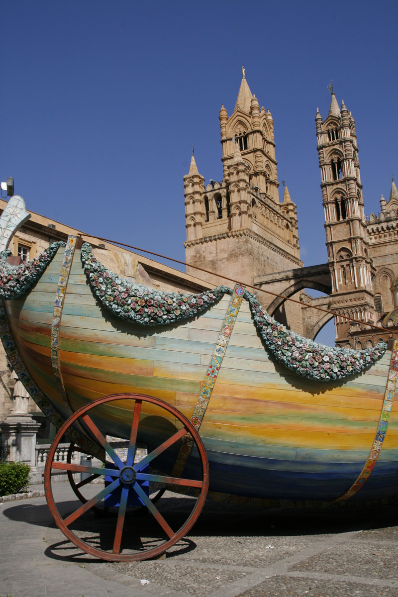In 2013 was ik op Sicilië. Een mooi eiland met herkenbare Italiaanse sfeer, zoals te zien is in deze beelden van Palermo. Hierboven een kleine serie van de kathedraal, waar op dat moment een mooie beschilderd houten bootje voor stond. Zoiets trekt altijd meteen mijn aandacht. Hieronder een impressie van het leven op straat. Met voorbijgangers, koetsjes, auto’s, mooie beelden … alles door elkaar in de typisch Italiaanse, charmante chaos.