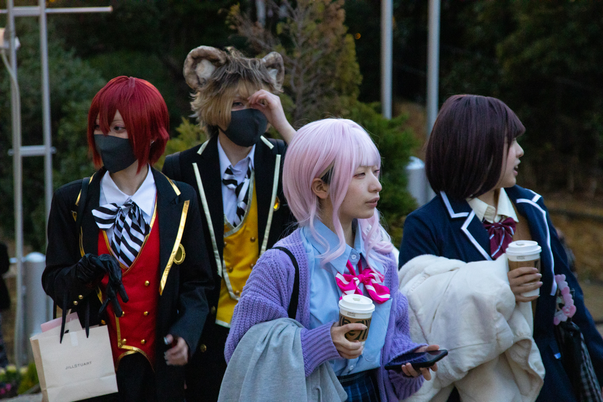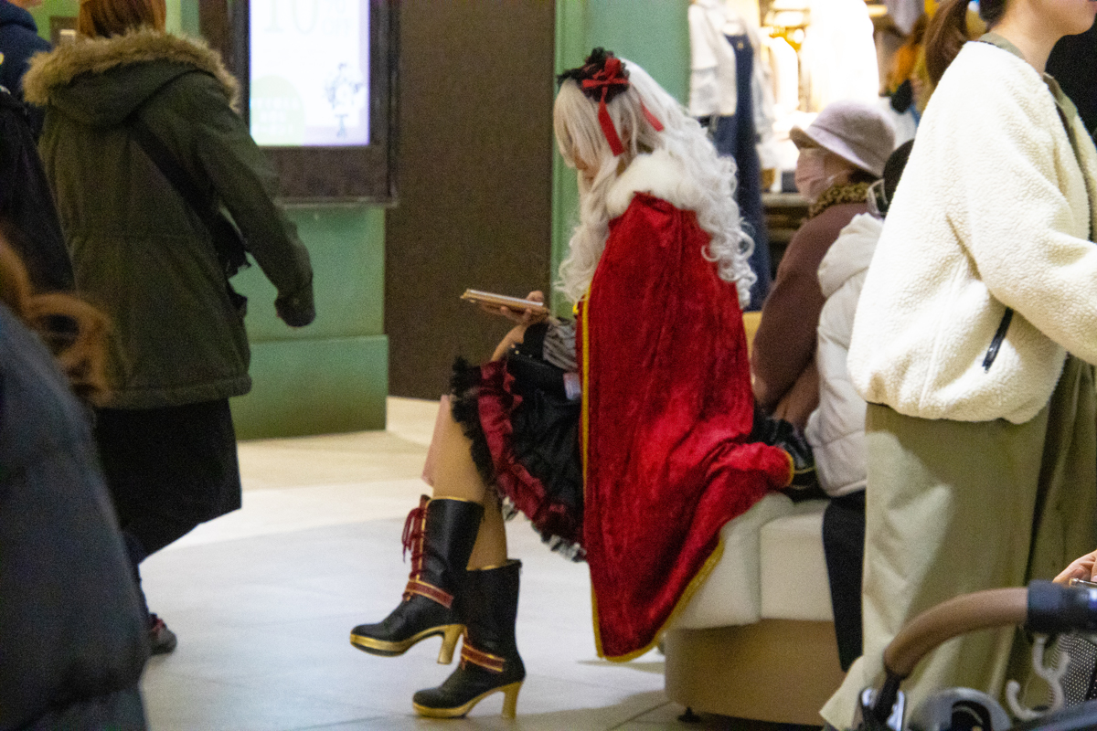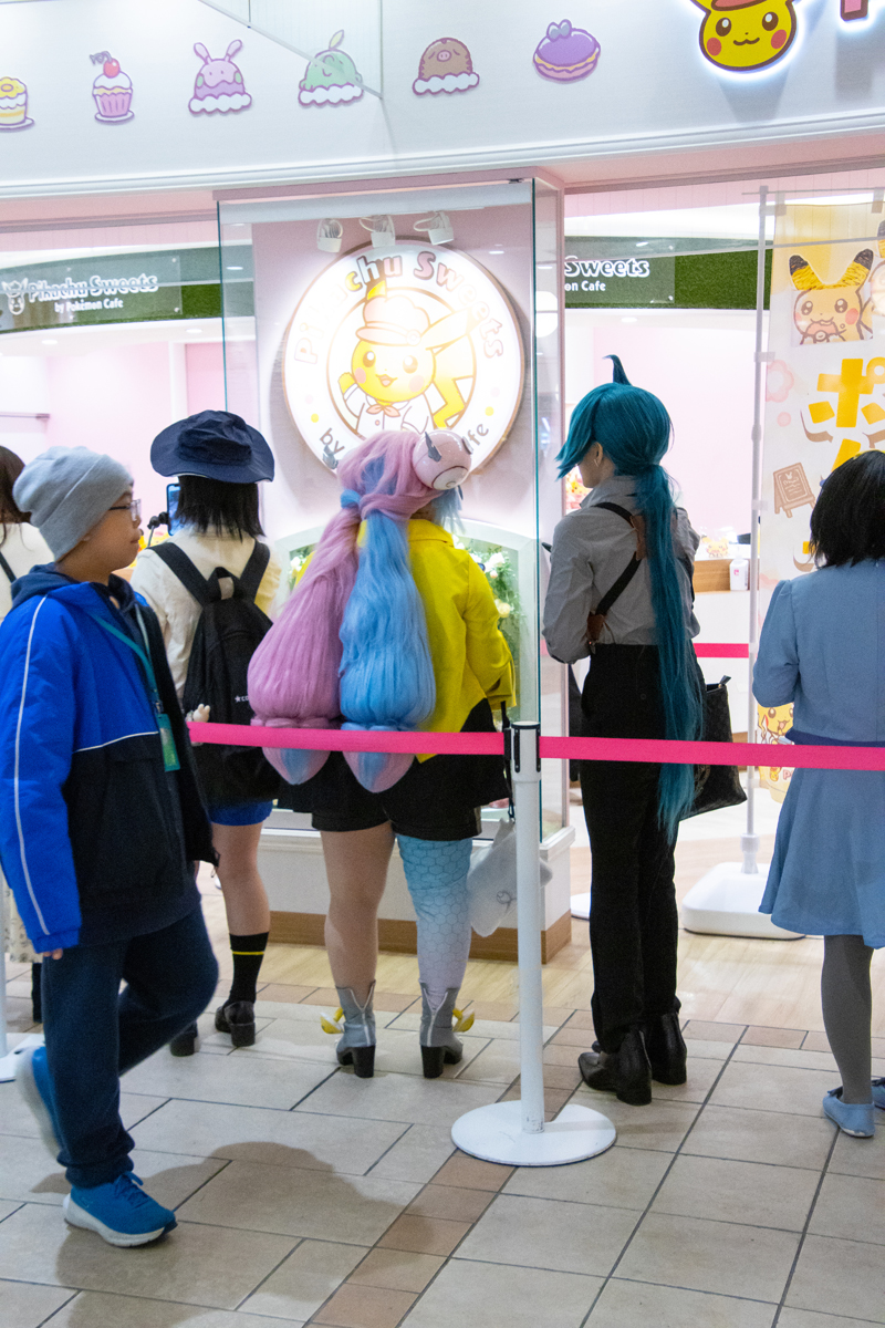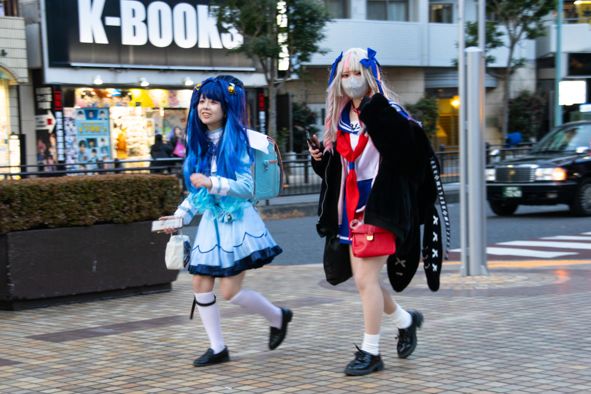 Op de dag van aankomst in Tokyo konden we niet direct inchecken, maar aangezien je vanuit het hotel zo het winkelcentrum Sunshine City in liep én het bijna lunchtijd was, vonden we dat niet zo heel erg: op zoek naar een restaurantje! Na een tijdje zoeken hadden we een plekje gevonden. We deden een bestelling en keken nog wat onwennig om ons heen. Naast ons schoven twee meisjes aan, die wel heel bijzonder uitgedost waren. Gekleurde pruiken, korte rokjes, vreemd gekleurde lenzen… we durfden niet echt te kijken, maar hadden moeite onze blik af te wenden. Ik herkende het wel, deze meisjes waren verkleed in de stijl van de Japanse mangastrips. Ik had gehoopt er een keer eentje te treffen, maar zo snel al? Na de lunch bleken zij niet de enige, het hele winkelcentrum leek er vol mee te lopen. Zouden ze dat dan altijd doen? Een soort weekend-outfit of zo?