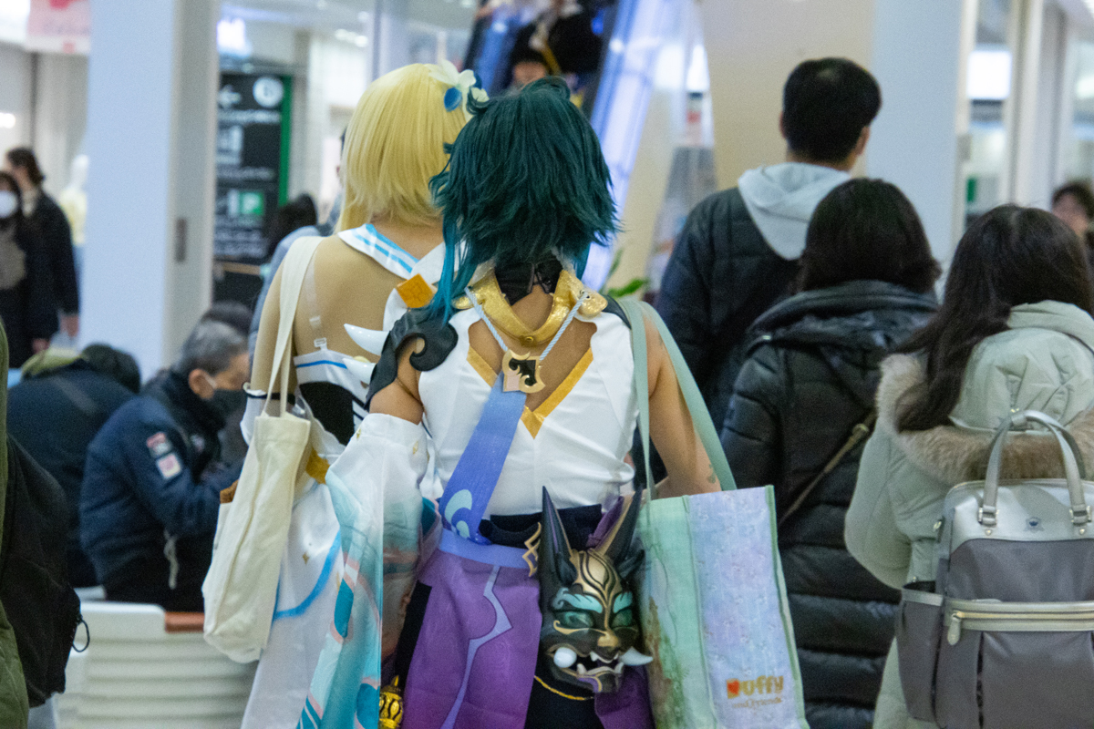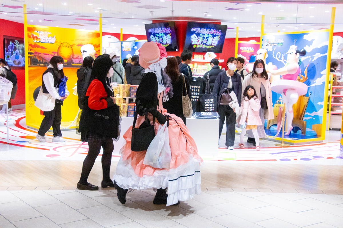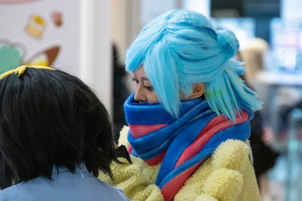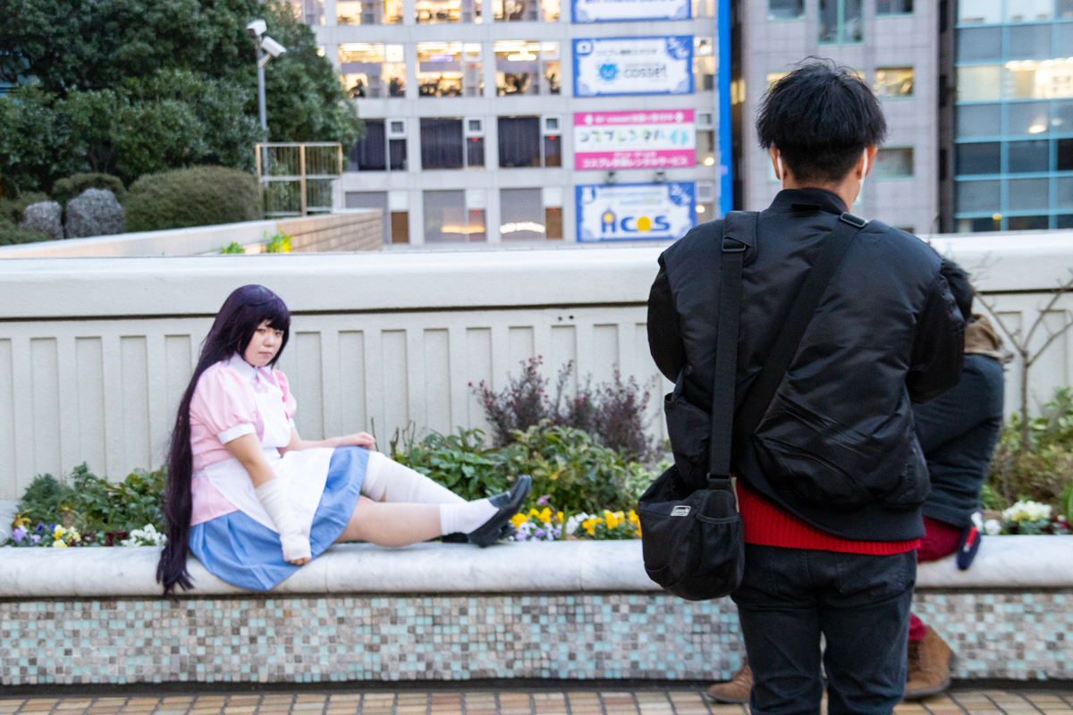 Op de dag van aankomst in Tokyo konden we niet direct inchecken, maar aangezien je vanuit het hotel zo het winkelcentrum Sunshine City in liep én het bijna lunchtijd was, vonden we dat niet zo heel erg: op zoek naar een restaurantje! Na een tijdje zoeken hadden we een plekje gevonden. We deden een bestelling en keken nog wat onwennig om ons heen. Naast ons schoven twee meisjes aan, die wel heel bijzonder uitgedost waren. Gekleurde pruiken, korte rokjes, vreemd gekleurde lenzen… we durfden niet echt te kijken, maar hadden moeite onze blik af te wenden. Ik herkende het wel, deze meisjes waren verkleed in de stijl van de Japanse mangastrips. Ik had gehoopt er een keer eentje te treffen, maar zo snel al? Na de lunch bleken zij niet de enige, het hele winkelcentrum leek er vol mee te lopen. Zouden ze dat dan altijd doen? Een soort weekend-outfit of zo?