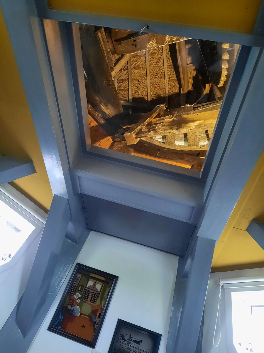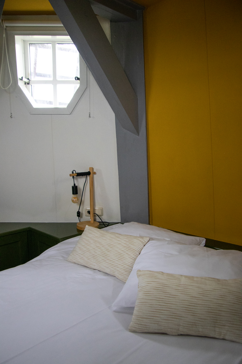 Maar niet alleen de buitenkant van de molen is leuk, de inrichting is zo mogelijk nog leuker. Knus en oud-Hollands gezellig. Slapen doe je boven, met vanuit je bed zicht op het (niet in werking zijnde) mechaniek van de molen. Douchen doe je beneden, met uitzicht op het weiland. Al met al een geweldige ervaring. Net zo leuk als onze eerdere Friese verrassingsovernachting, in de vuurtoren van Harlingen.