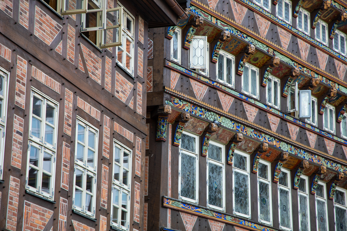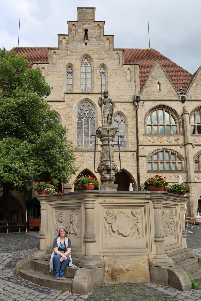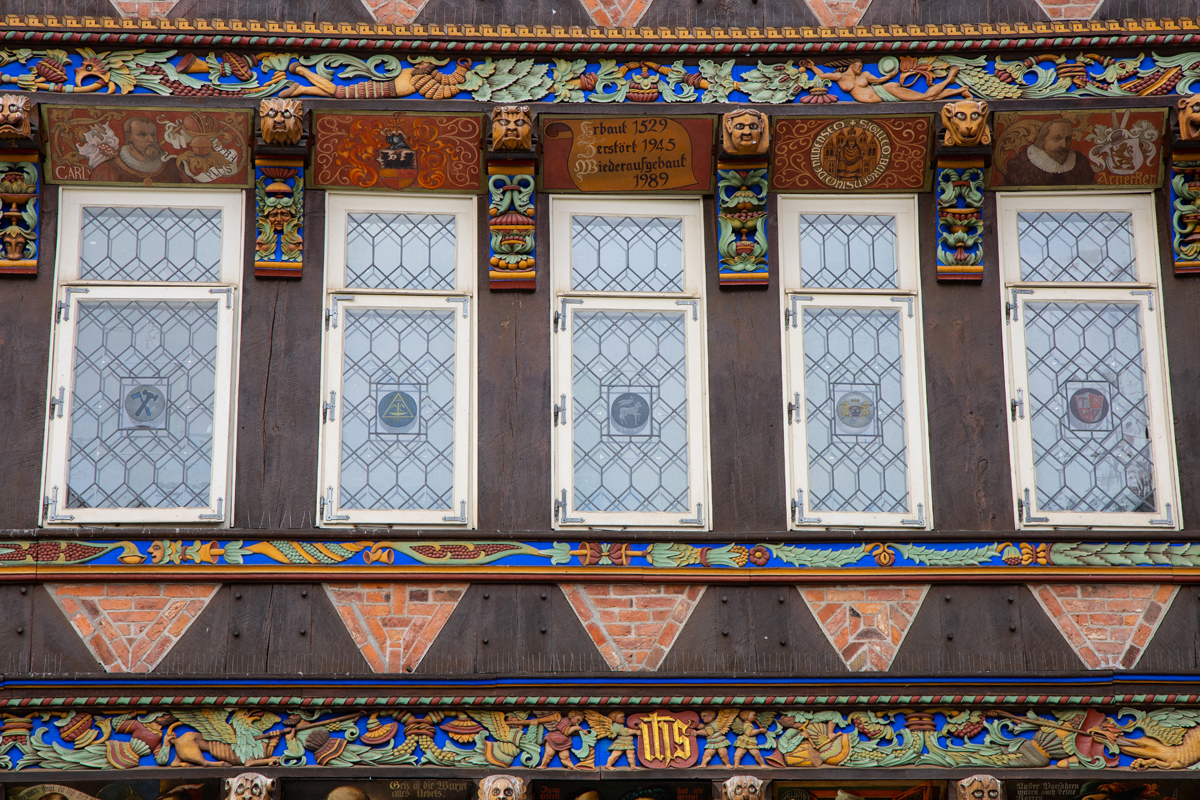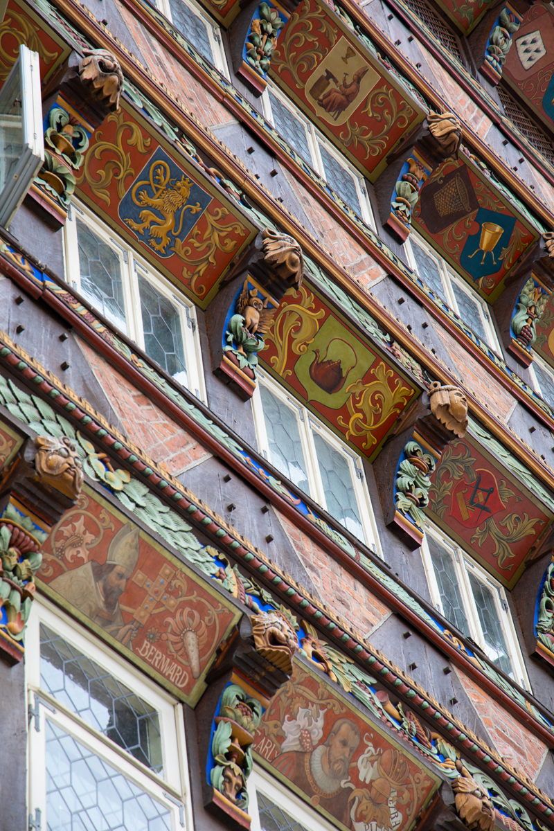 Na een korte opfrisbeurt in het hotel liepen we het mooie centrum in, waar we in eerste instantie rechtstreeks naar het marktplein liepen. Daar was al direct veel moois te zien, waaronder het ‘Knochenhaueramtshaus’, het voormalige gildehuis voor de vleeshouwers. Het gebouw is in 1529 gebouwd en in de periode 1986-1989 gereconstrueerd, nadat het in de tweede wereldoorlog flink beschadigd was – overigens na een paar eerdere verbouwingen, onder meer na een flinke brand in 1884. Het pand is dus niet helemaal authentiek, maar de schoonheid er van heeft er niet onder geleden. Tegenwoordig is er een restaurantje onderin het pand gevestigd, KA7, waar wij een lekkere schnitzel hebben gegeten (je bent in Duitsland of niet hè…).