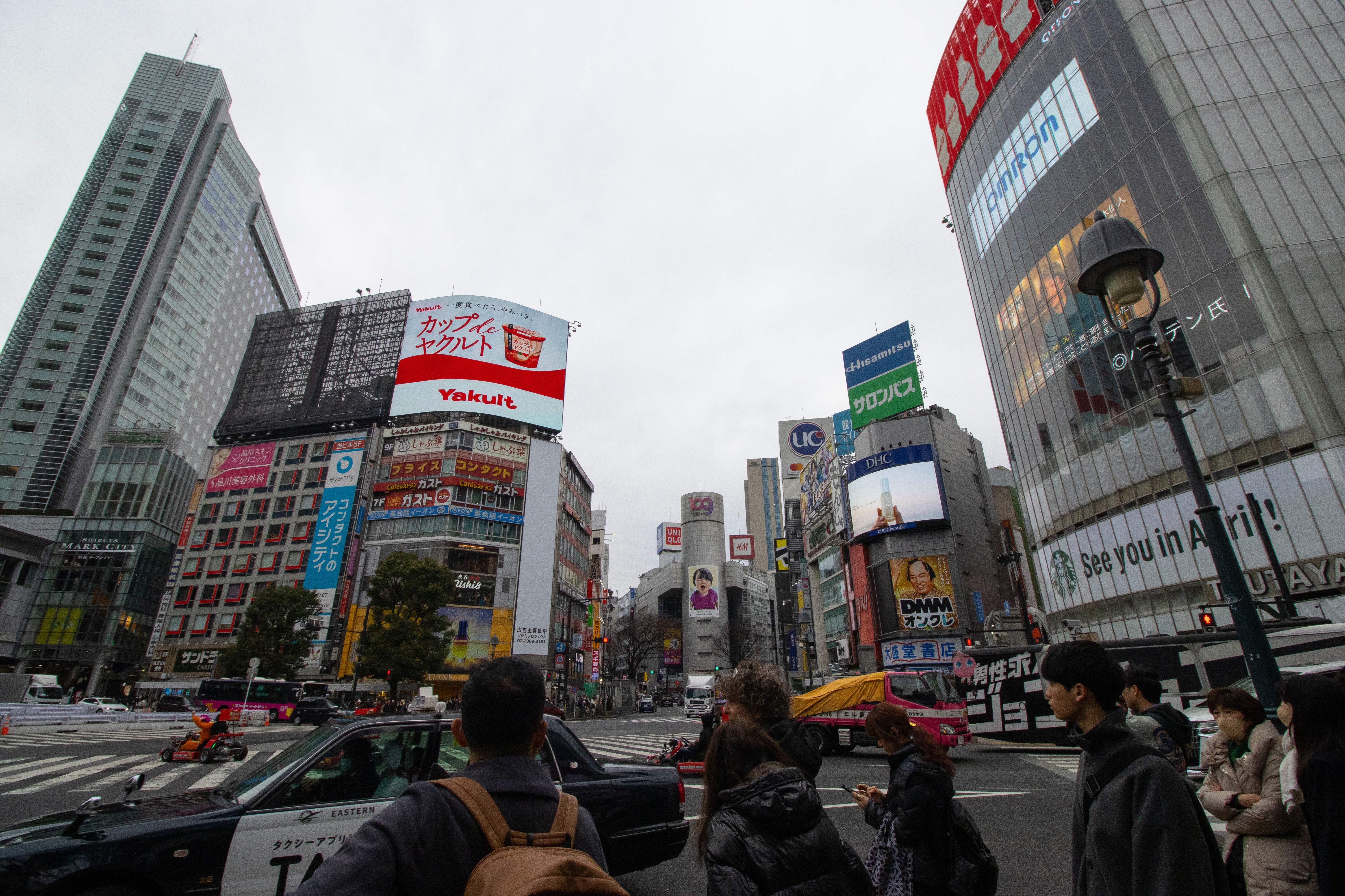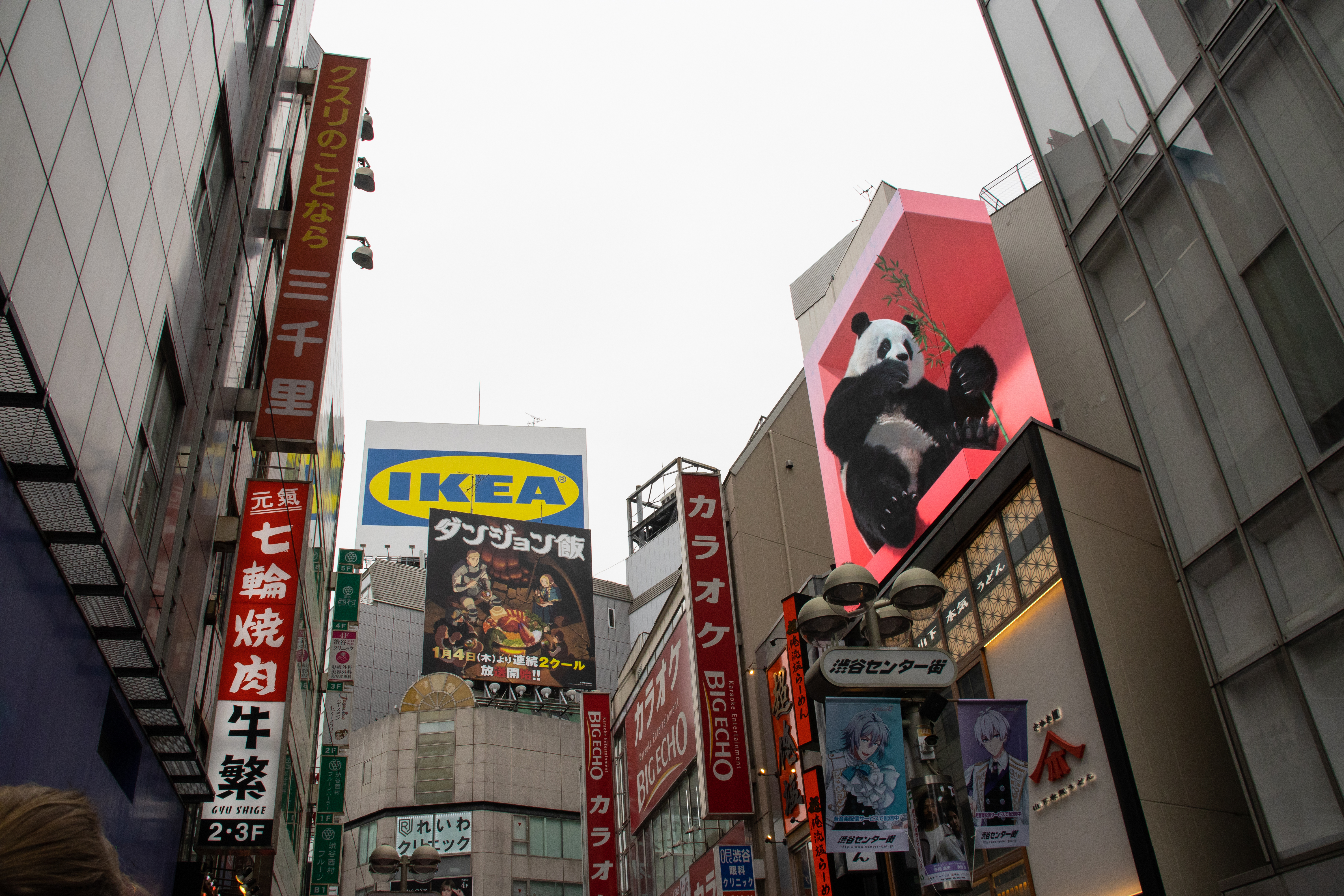 Voor een relaxt begin van onze reis, waren we een dag eerder in Tokyo aangekomen dan onze groepsgenoten, om even wat te kunnen herstellen van de jetlag. Een extra dag die we vooral – op loopafstand – doorbrachten in het winkelcentrum. Pas de volgende dag ontmoetten we onze reisgenoten: direct nadat zij hun koffers bij de receptie hadden achtergelaten, was het tijd om met z’n allen op pad te gaan. Naar de metro om kaartjes te kopen en dan de metro in: op naar het eerste station, Shibuya. Een plek waar je ondergedompeld wordt in de enorme drukte van Tokyo, want daar vind je het drukste kruispunt van de wereld, Shibuya Crossing. Overal wolkenkrabbers, lichtreclames, auto’s en vooral: heel veel overstekende voetgangers. En een voor ons onbekend fenomeen, de 3D reclame: