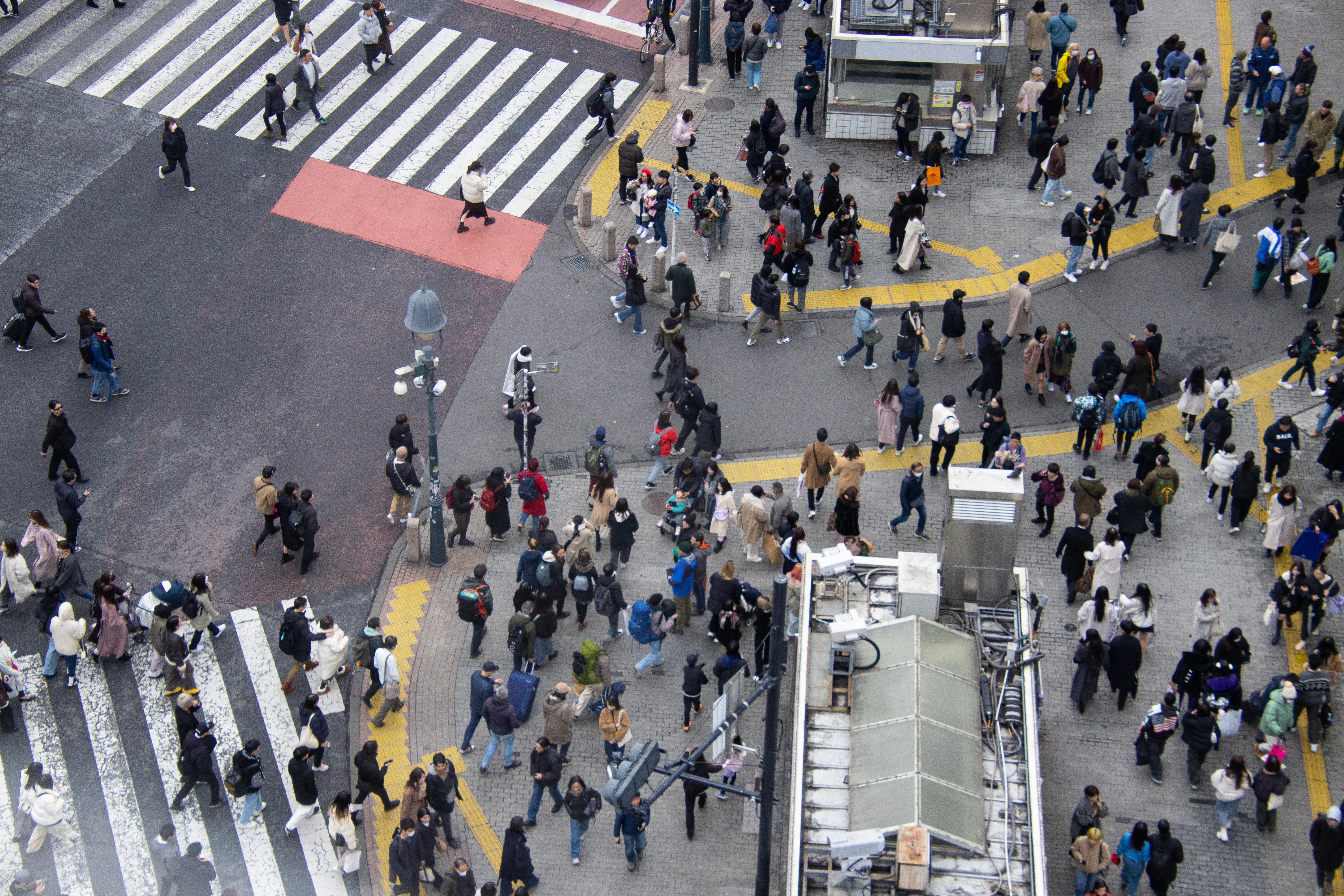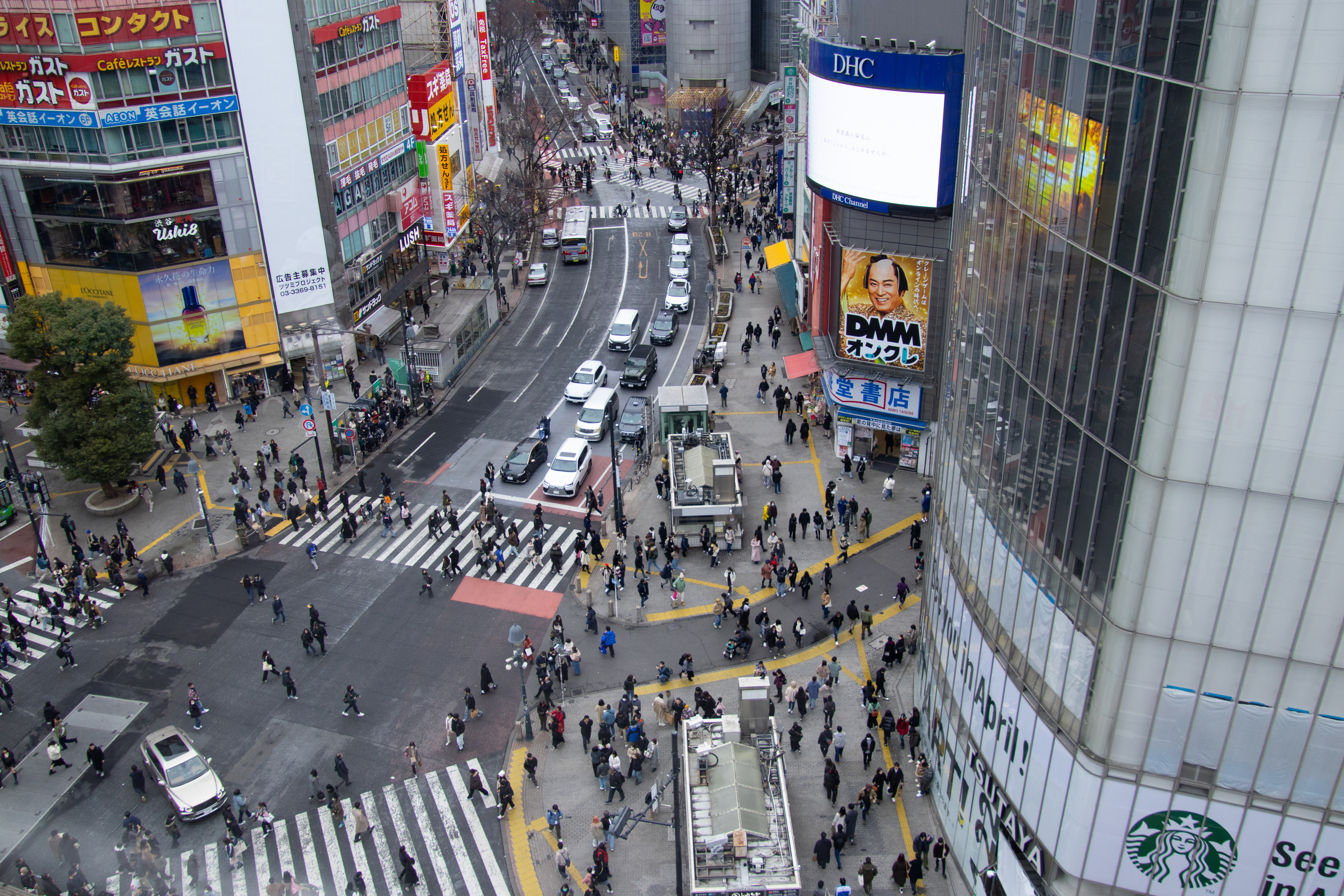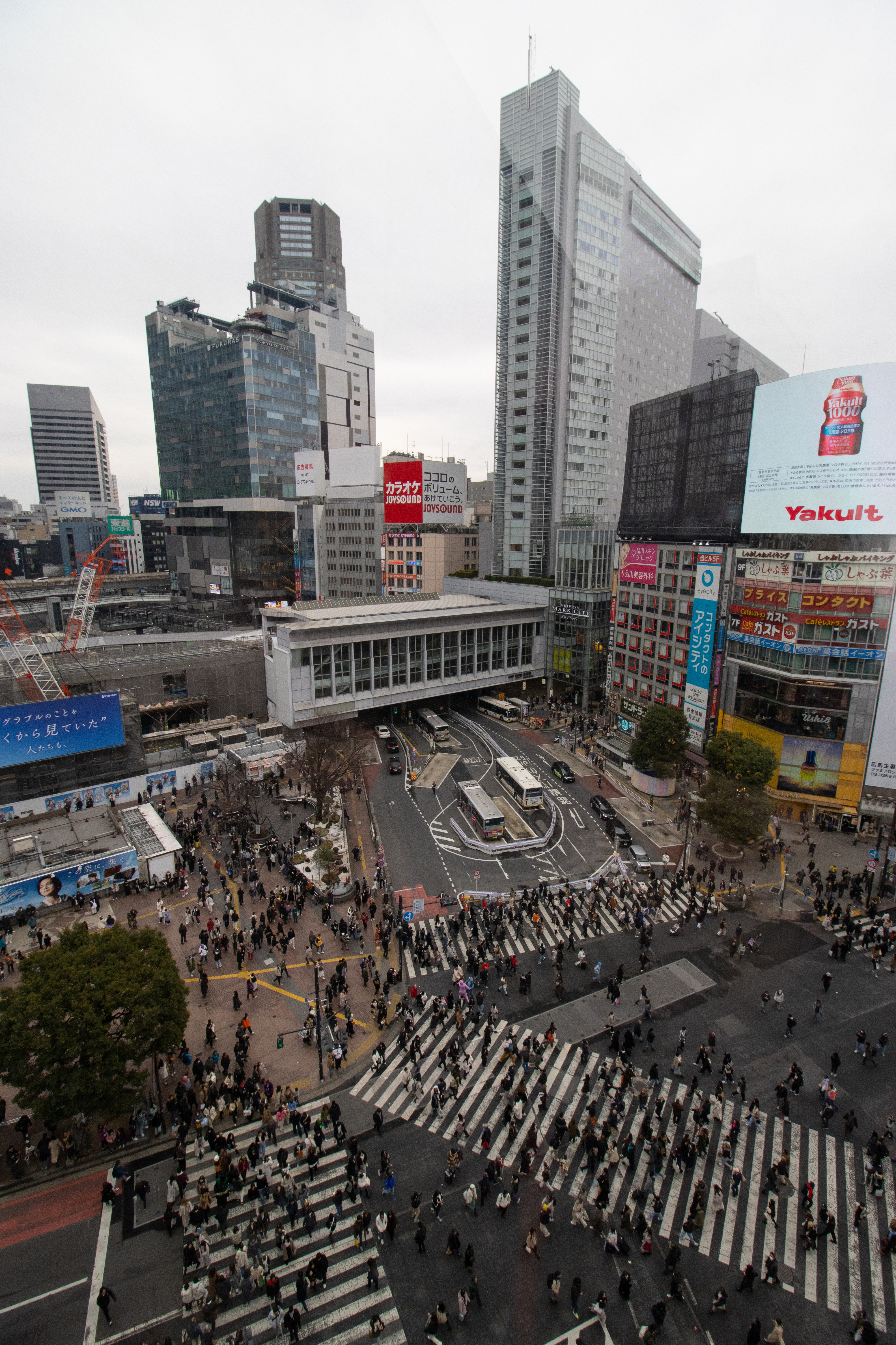 Op een van de wolkenkrabbers rond het kruispunt is een observatiedek gemaakt, waarvandaan je de hectiek sinds 2019 vanaf grote hoogte kunt bekijken bron: rondreis.nl). Dit filmpje laat goed zien wat er gebeurt als de stoplichten op groen gaan: vanaf alle kanten vullen de zebrapaden zich met voetgangers (zonder dat ze op elkaar botsen). Net menselijke mieren!