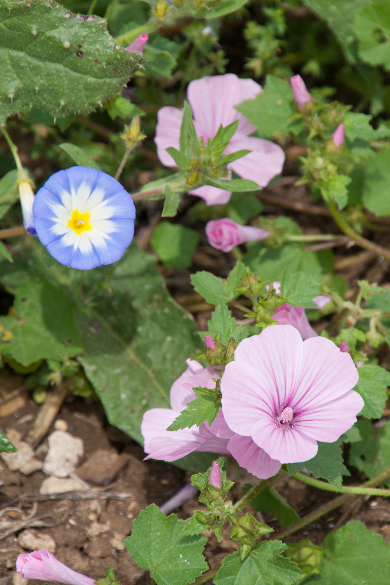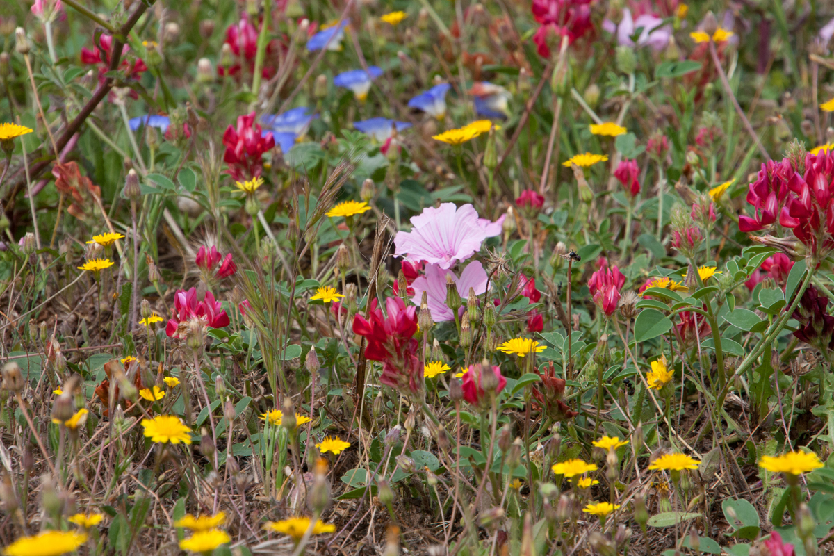 Maar wat ons bezoek die dag écht indrukwekkend maakte, waren de prachtige bloemen die overal op het terrein groeiden. Een zee van kleuren! Je begrijpt hoe geschokt wij waren toen – net nadat ik de foto’s had gemaakt – een tuinman op een grote grasmaaier kwam aanrijden…. en jawel, een kwartiertje later hadden alle bloemen het veld moeten ruimen. Gelukkig hebben we de foto’s nog.
