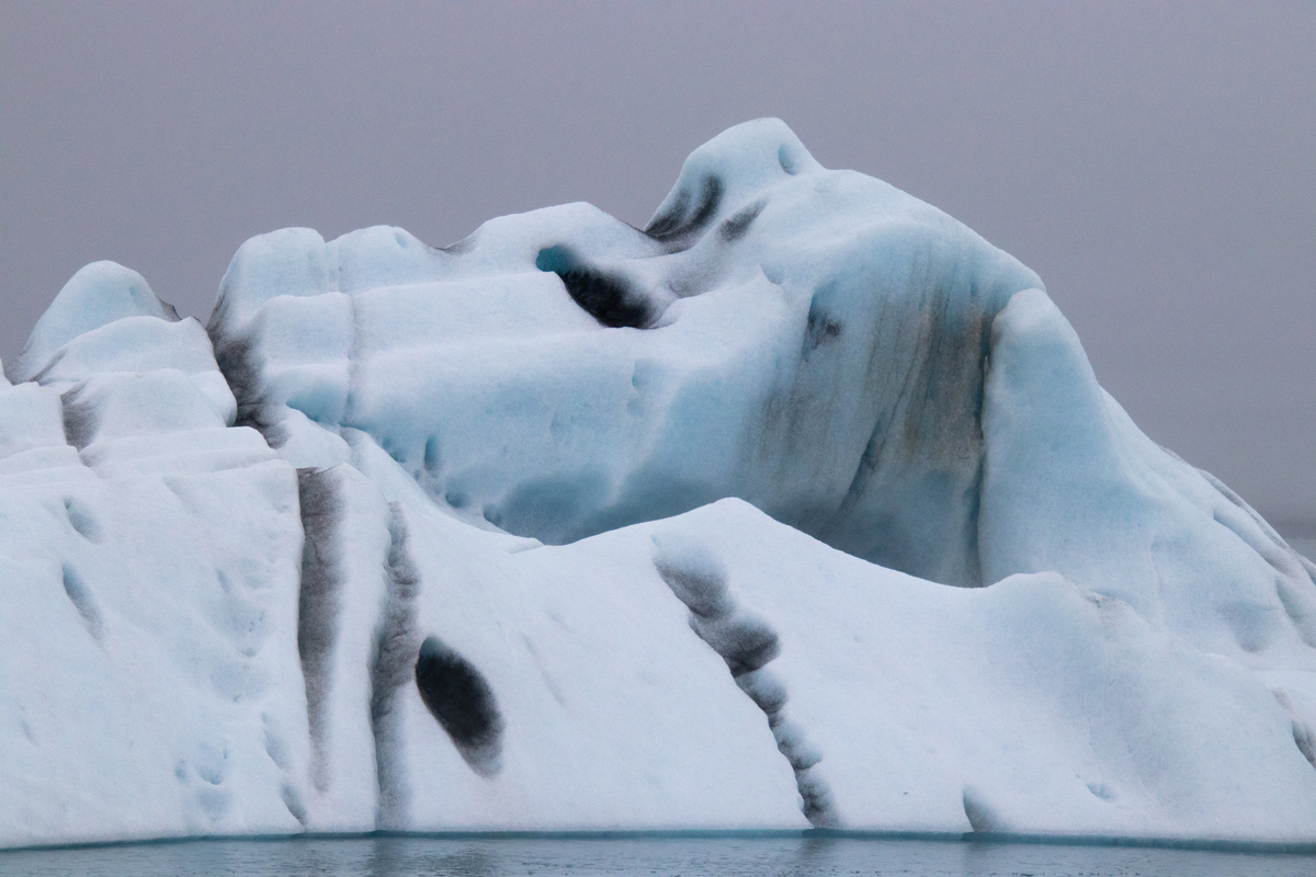 De ijsblokken die je op de foto’s ziet, zijn afgebroken stukken van de gletsjer.