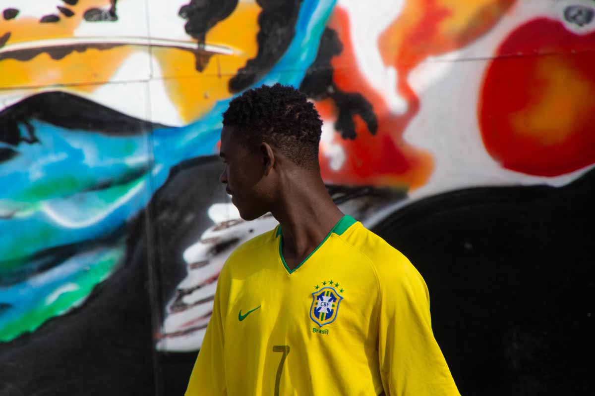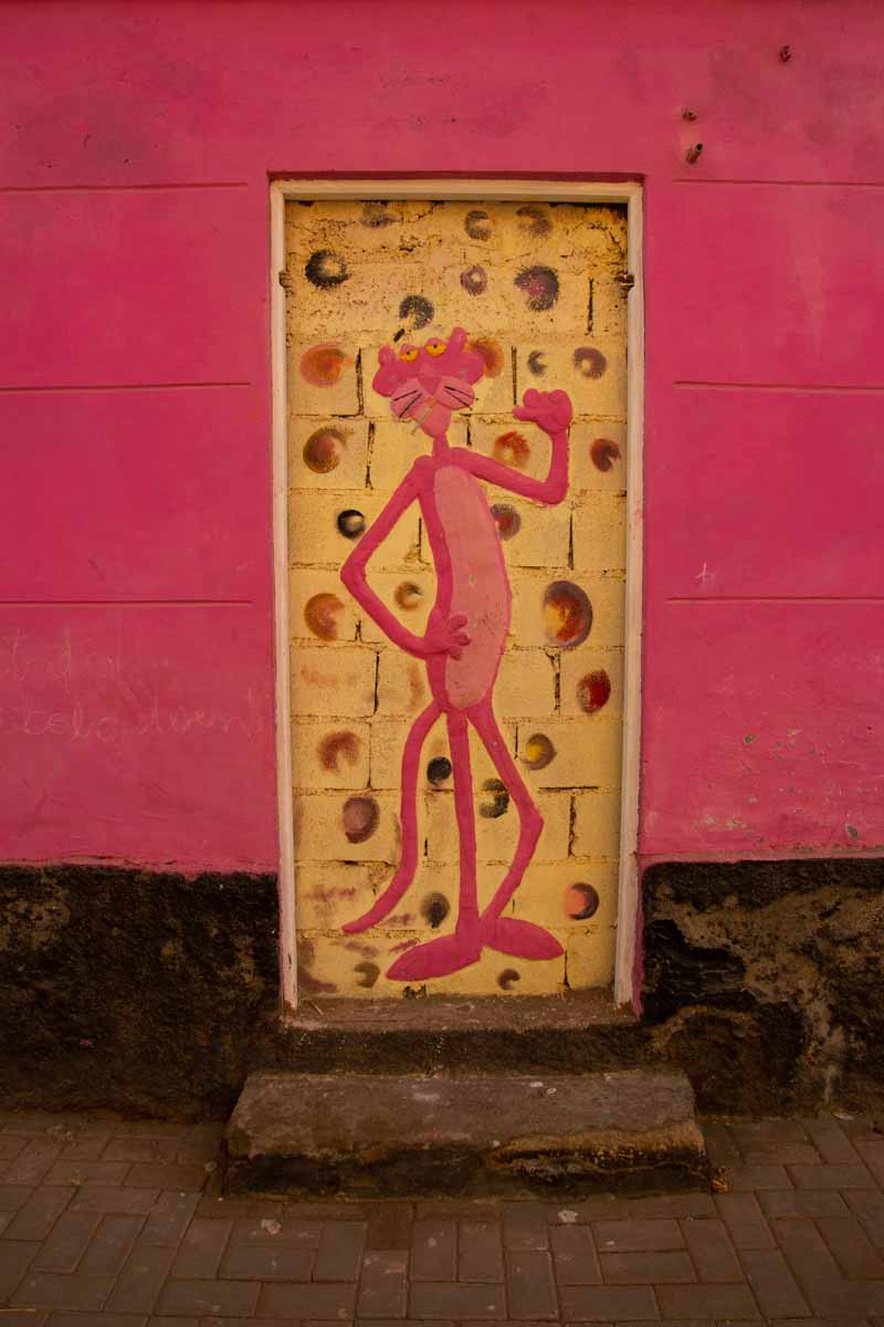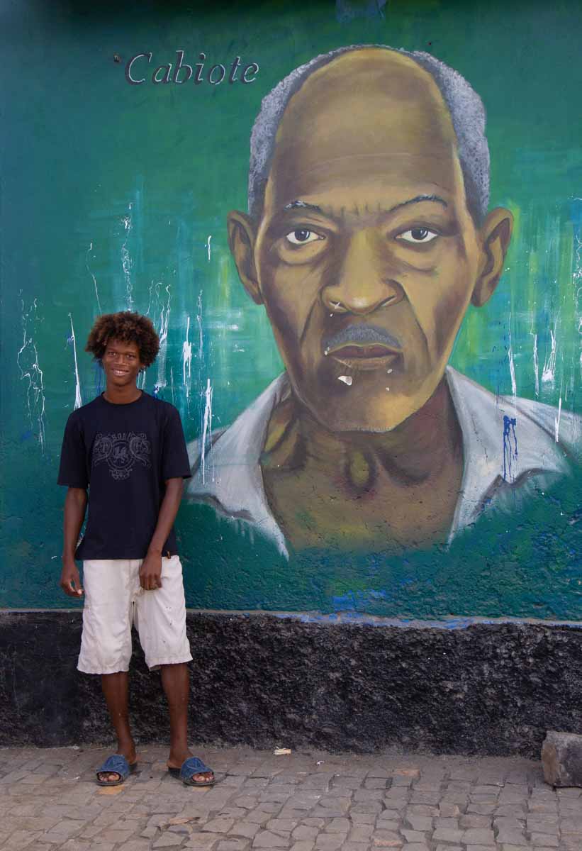 Zo af en toe was er ook een lokale bewoner die wel even voor de kleurrijke kunst wilde poseren. Eentje wilde zelfs wel heel graag: de jongen met de witte korte broek vertelde dat de man op de schildering achter hem zijn opa was. Of dat echt waar is, heb ik nergens kunnen terugvinden, maar ik moet zeggen dat hij er wel veel op leek, dus ik geloof hem wel. Leuk toch, als je kunt poseren met je eigen opa?