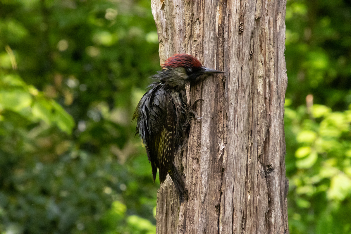 Nadere studie achteraf leert ons dat dit waarschijnlijk een dame was: de mannelijke groene specht heeft een rode vlek onder zijn oog en die ontbreekt bij deze (bron: vogelbescherming.nl).