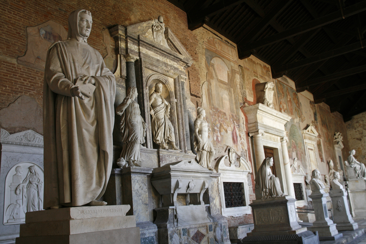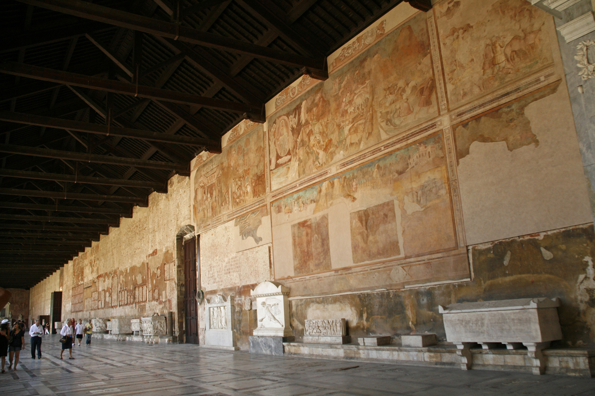 De drie grote monumenten op het plein worden beschouwd als de drie grote stadia in een mensenleven: het ronde gebouw is het Baptiserium, welke symbool staat voor de geboorte. De kathedraal van Santa Maria Assunta, waar de toren onderdeel van uitmaakt, representeert het leven. Ten slotte is er het kerkhof als vertegenwoordiger van de dood. (bron: toscanetips.nl). (Lees verder onder de galerij).