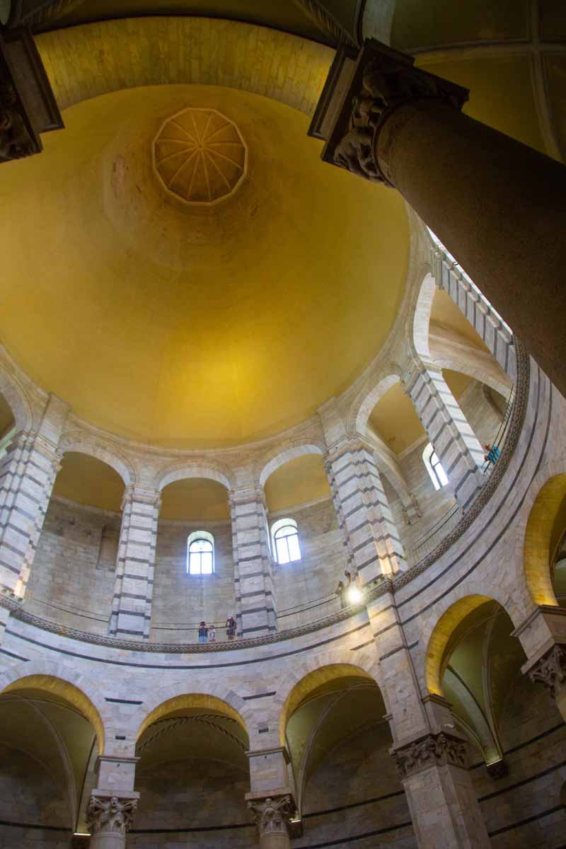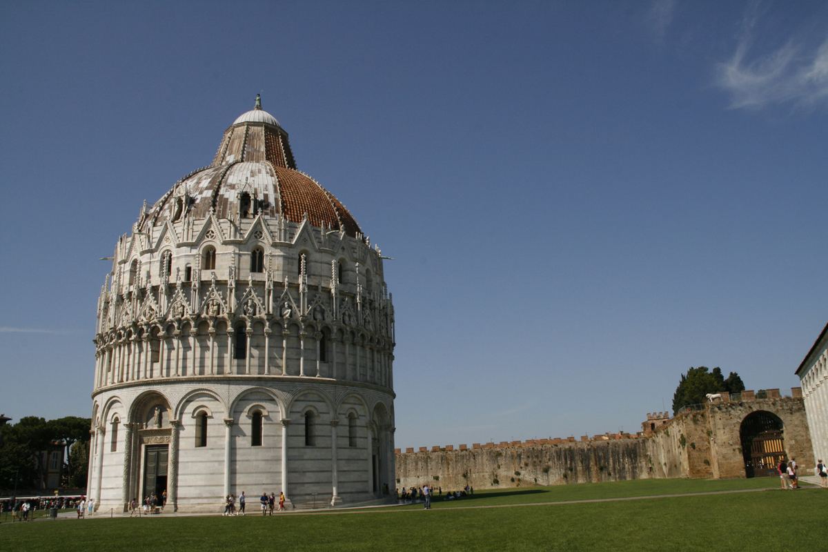Pisa is natuurlijk beroemd vanwege de scheve toren, die uitnodigt tot het maken van steeds weer dezelfde grap: poseren alsof je de toren tegenhoudt. Maar deze in 1173 gebouwde toren (die ook toen al schuin stond) staat niet alleen. De toren is 55 meter hoog en helt 5 graden naar het zuiden en is onderdeel van het Piazza dei Miracoli, oftewel het plein der wonderen. En inderdaad is er genoeg wonderlijks te zien, zoals ik twee keer mocht ervaren.