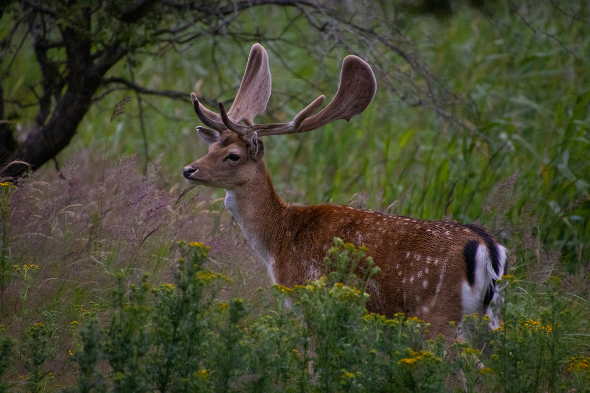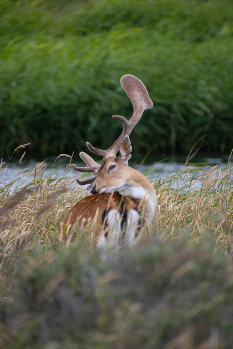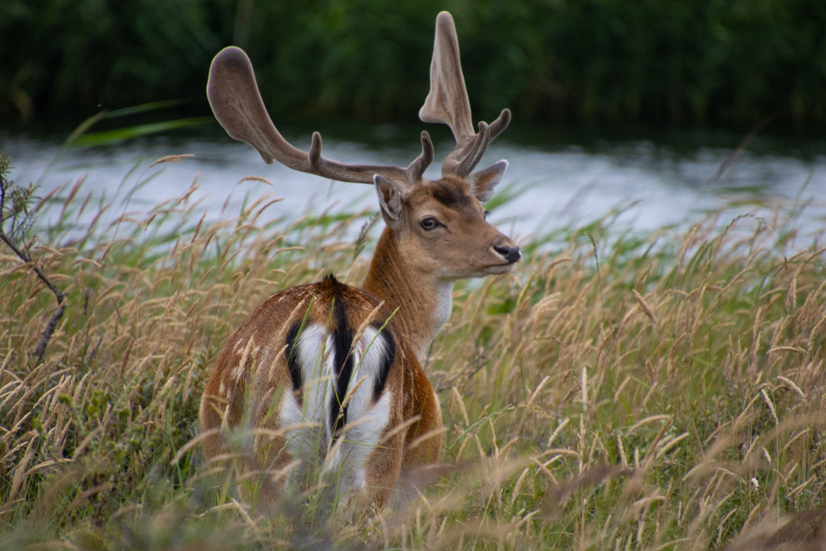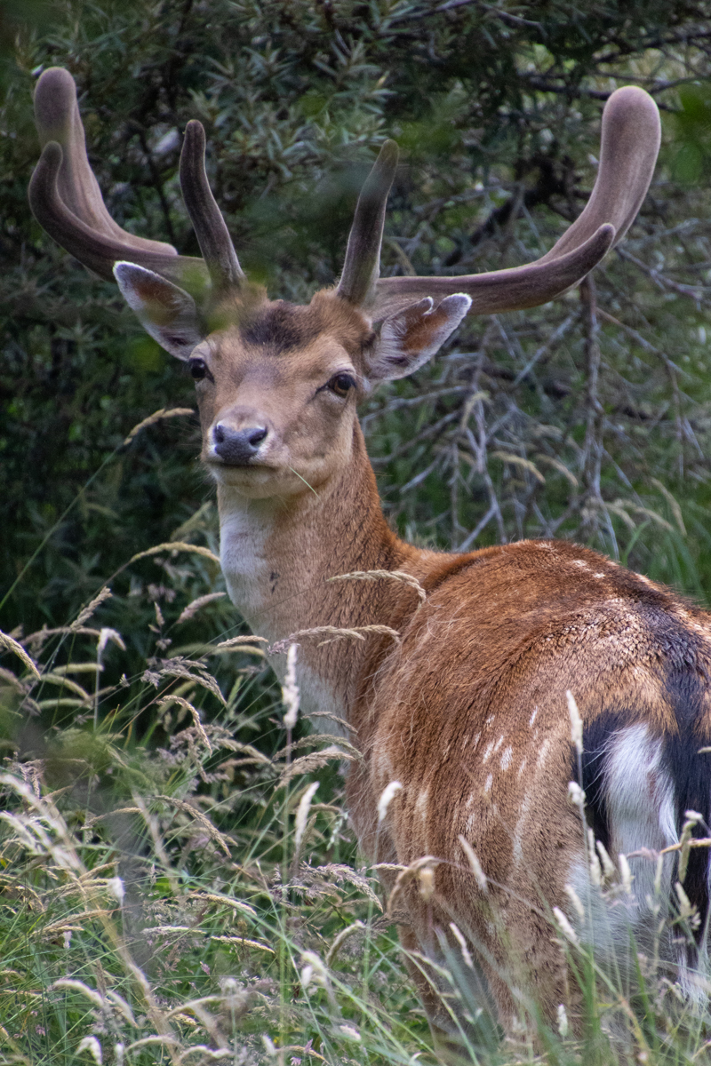 De Waterleidingduinen bleek een prachtig landschap, maar natuurlijk was dat niet waar we in de eerste plaats voor kwamen. De rode viervoeter liet eventjes op zich wachten, maar dat werd helemaal goed gemaakt door de damherten. Er schijnen er zo’n 2900 rond te lopen (telling 2021, theoutdoors.nl), dus die kans was niet klein. Maar evengoed bijzonder om zulke grote dieren van zo dichtbij te kunnen zien.