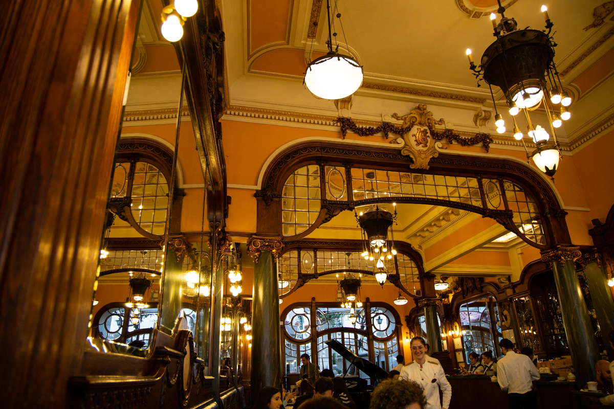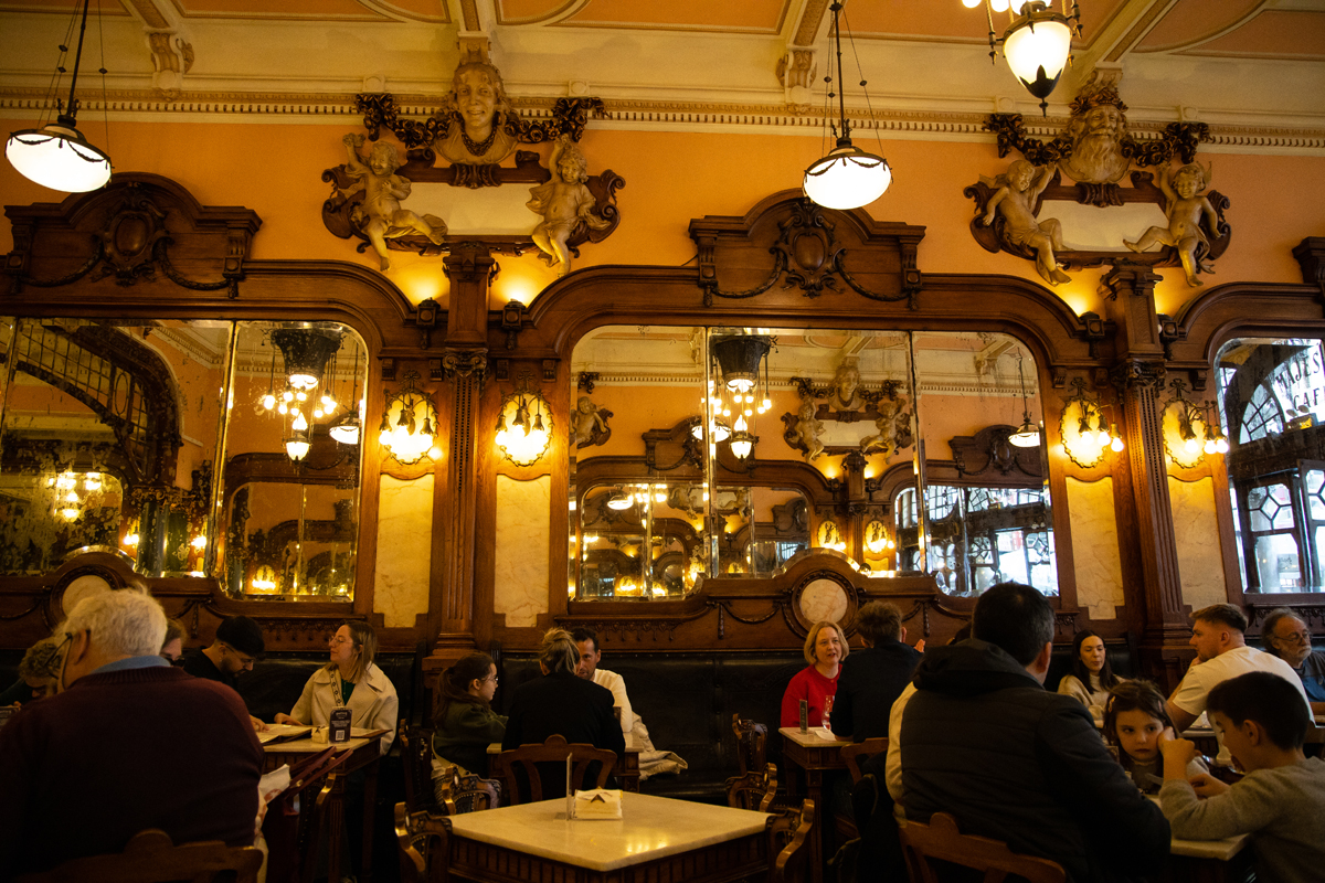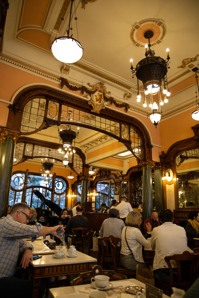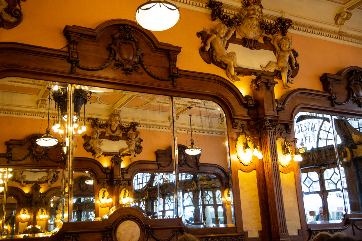 Majestic is een prachtig café met een art nouveau gevel en een rijk versierd interieur in de sfeer van de Belle Epoque, dat in december 1922 haar deuren opende – bijna een eeuw geleden dus. Ten tijde van het regime van dicatator Salazar, kwamen studenten, schrijvers en andere intellectuelen in dit café bij elkaar om over de politieke situatie van gedachten te wisselen (bronnen: cafemajestic.com, tix.nl). Wij dronken er gewoon een koffie, met iets lekkers er bij. Ik koos voor het wentelteefje, de specialiteit van het huis. Een aanrader!