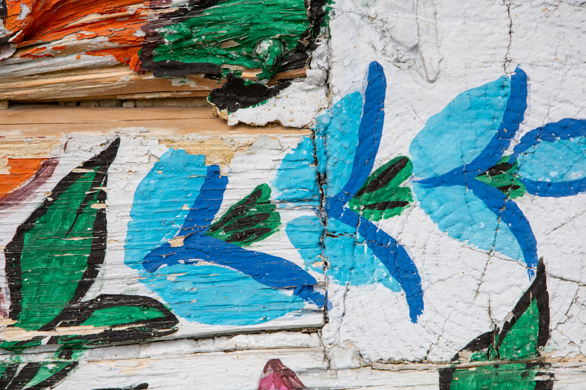 Eén van de mooiste huisjes, was toch wel dit lieflijke exemplaar in wit en lichtblauw. Een beetje vervallen, maar dat droeg wel bij aan de charme.