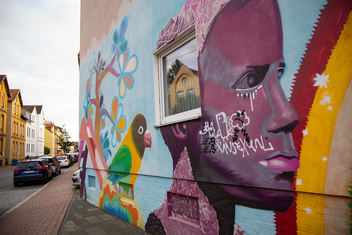 Ik vind het altijd leuk om foto’s te maken van streetart of mooie graffiti. Dus natuurlijk moest ik deze mooie tekeningen in Hildesheim vast leggen. Hildesheim is een niet te grote stad met rond de 100.000 inwoners en ligt dertig kilometer ten zuidoosten van Hannover (bron: Wikipedia). Wij brachten er in de zomer van 2024 de nacht door als tussenstop op weg naar Polen. Zeker een aanrader, lees ook eens mijn eerdere blog over Hildesheim.