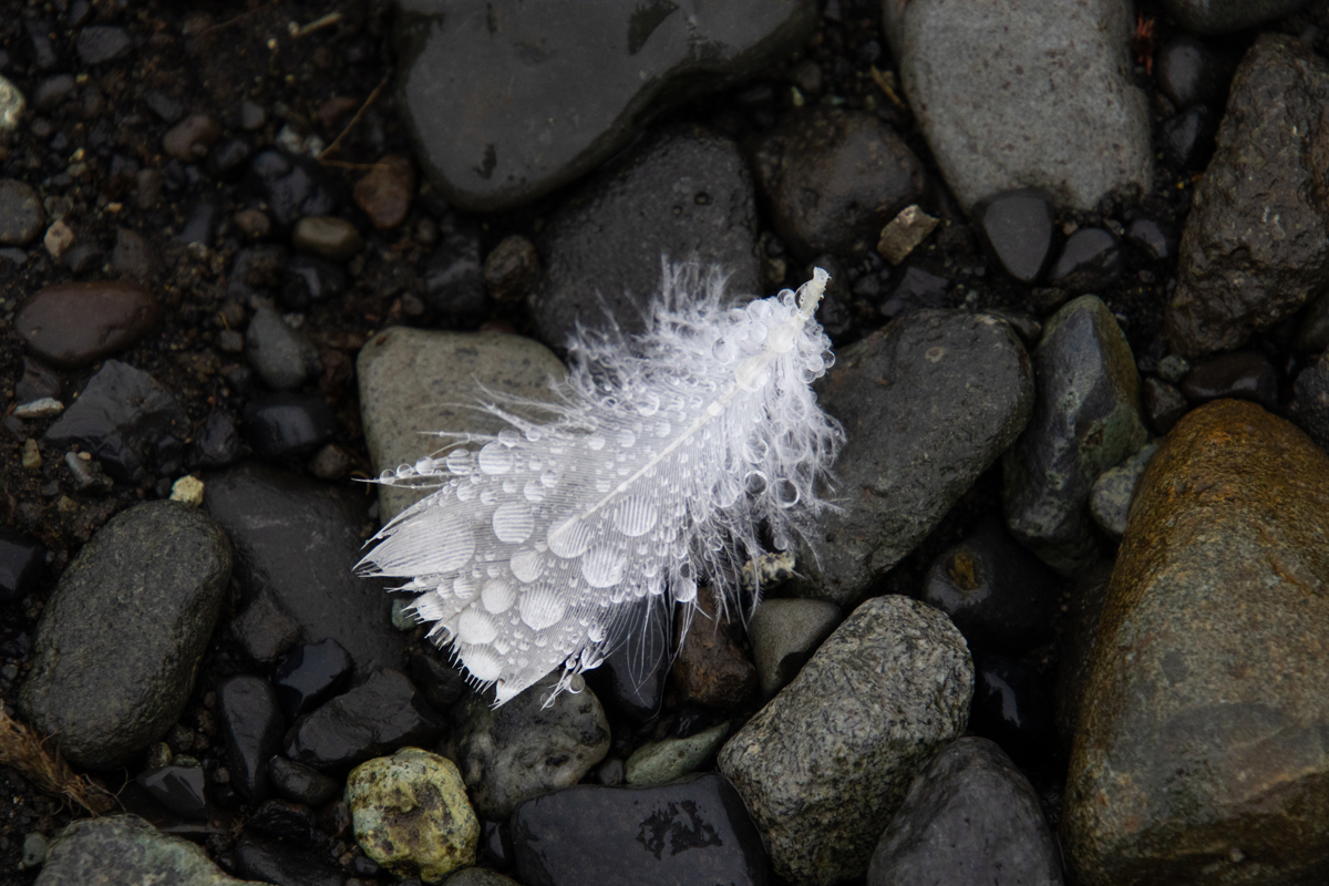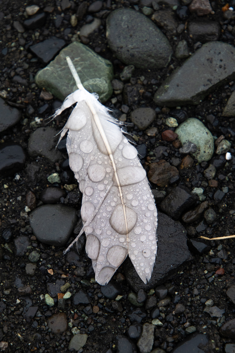 Sommige ijsblokken zijn net kleine kunstwerkjes . Net als deze achtergelaten veertjes trouwens.