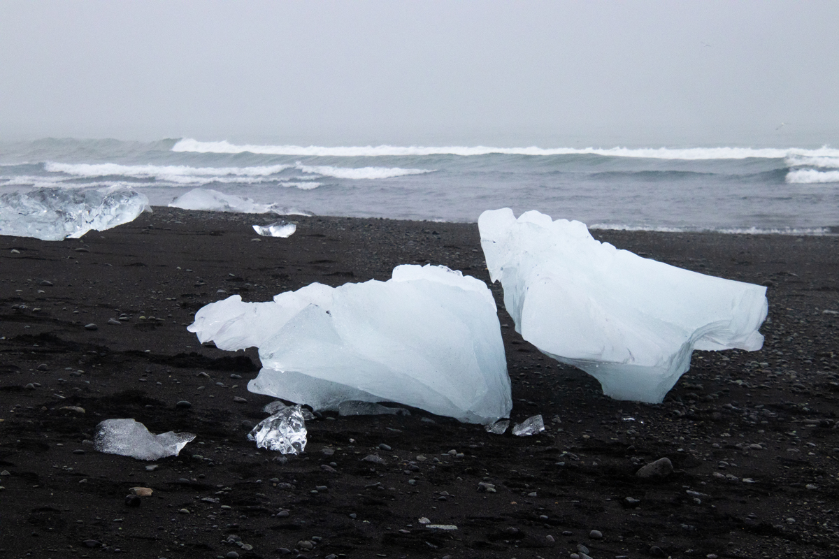 Naast het beroemde gletsjermeer Jökulsárlón ligt een mooi zwart strand met de naam Diamond Beach. Het strand ontleent zijn naam aan het feit dat het zwarte strand bezaaid ligt met grote en kleine brokken, wit glanzend ijs.