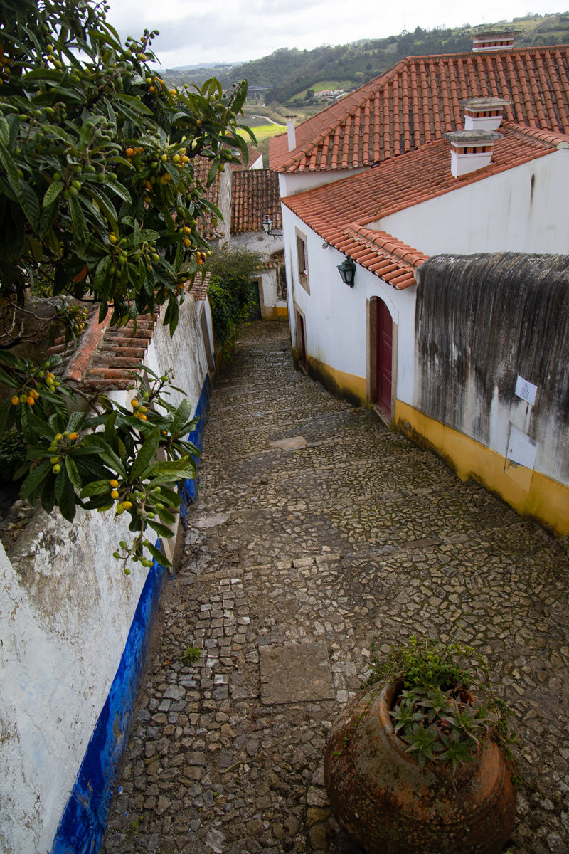 Als je naar Portugal gaat, moet Óbidos zeker op je bucketlist. Het stadje wordt gedomineerd door het kasteel en is helemaal ommuurd. Binnen deze muren – waar je overheen kunt lopen – vind je de historische stadskern. Een doolhof van kleine straatjes met de kenmerkende Portugese straatsteentjes en oude witte huisjes, vrijwel allemaal met donkergele of blauwe randen. Prachtig om in rond te dwalen.