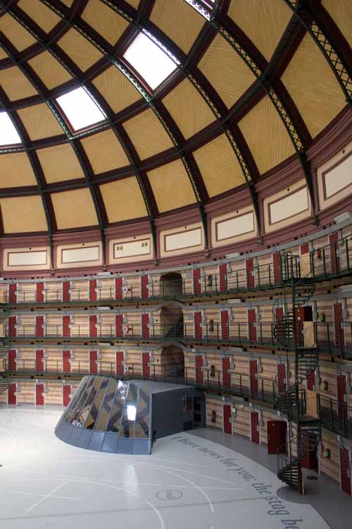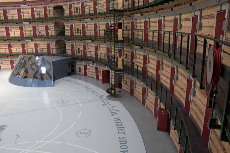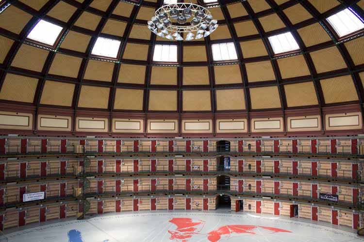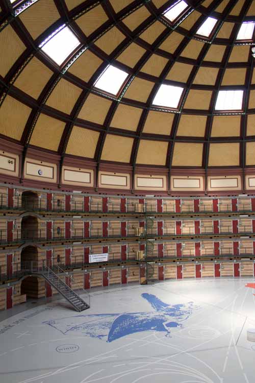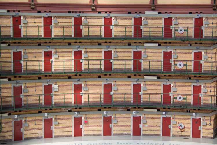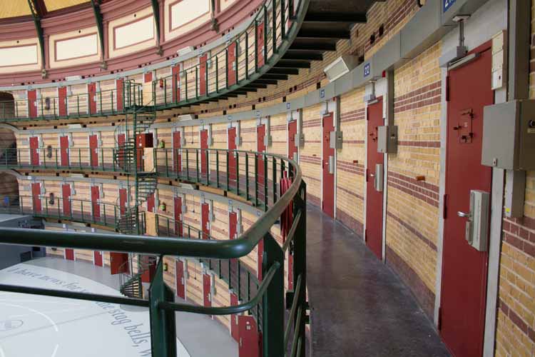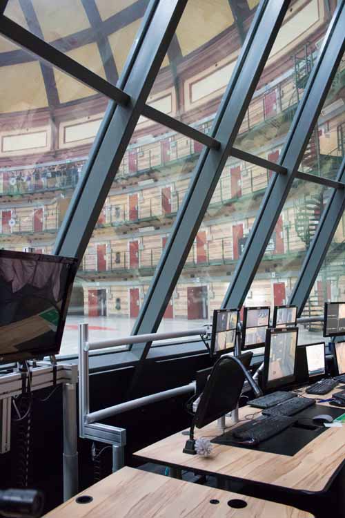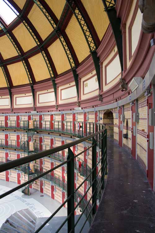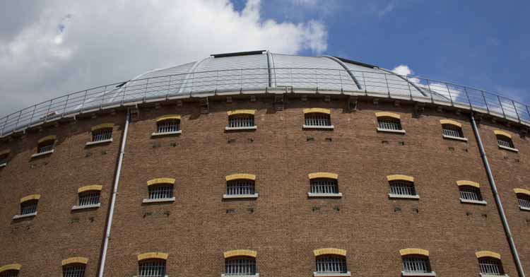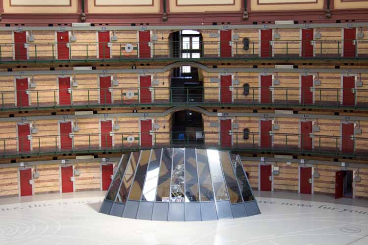 De gevangenis, meestal een gebouw waar je niet graag komt. Maar sommige gevangenissen hebben historische waarde en zijn daardoor een (kortstondig) bezoek waard. Heel mooi in dat opzicht zijn de zogenaamde koepelgevangenissen. Een koepelgevangenis heet zo – niet verrassend – omdat hij de vorm van een koepel heeft. In Nederland zijn er nog drie te vinden, in Breda, Arnhem en Haarlem. Alledrie de gevangenissen zijn ontworpen door J.F. Metzelaar, volgens het ‘panopticon principe’. Dit concept is door de Britse Jeremy Bentham in 1791 beschreven en heeft als doel de gevangenen beter te kunnen bewaken: vanaf de toren kan een bewaker alle gevangenen en cellen zien, maar omgekeerd kunnen de gedetineerden niet in de toren kijken. Zo weten zij nooit op welk moment er wel of niet op hen gelet wordt, wat zelfregulering van gedrag bevordert. Het woord is afgeleid van een Grieks woord dat ‘alziend’ betekent.