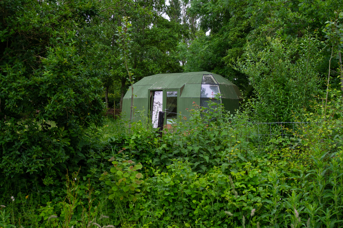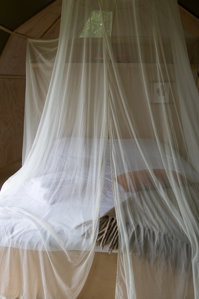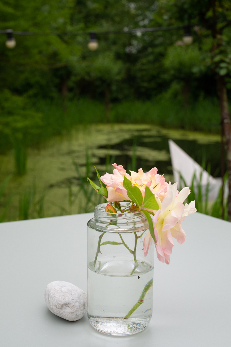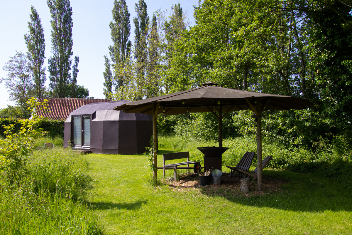 Behalve het hoofdgebouw, waar je iets kleins kunt nuttigen op het terras, staan er slecht een handjevol eco-cabins op het terrein. Het is dan ook geen camping, maar een rozenkwekerij. Wij sliepen in cabin Primrose en genoten van de prachtige rozen in de grote tuin.