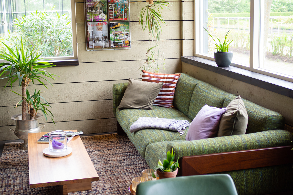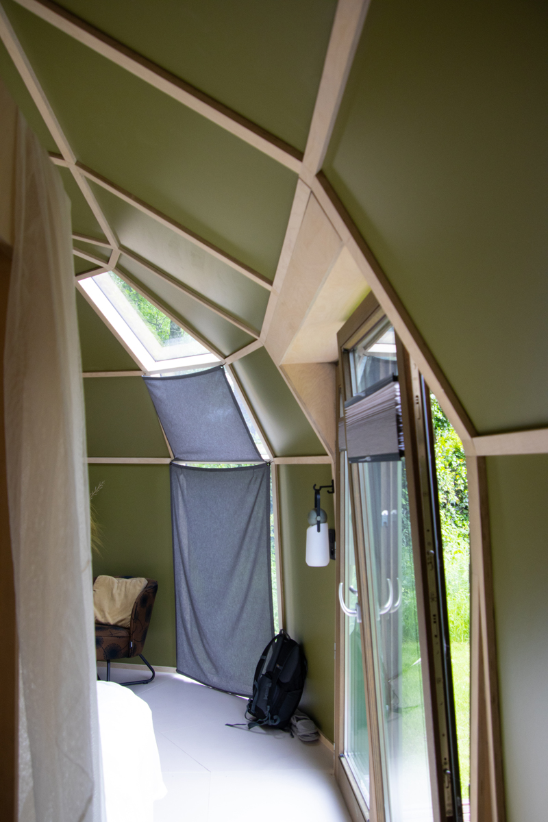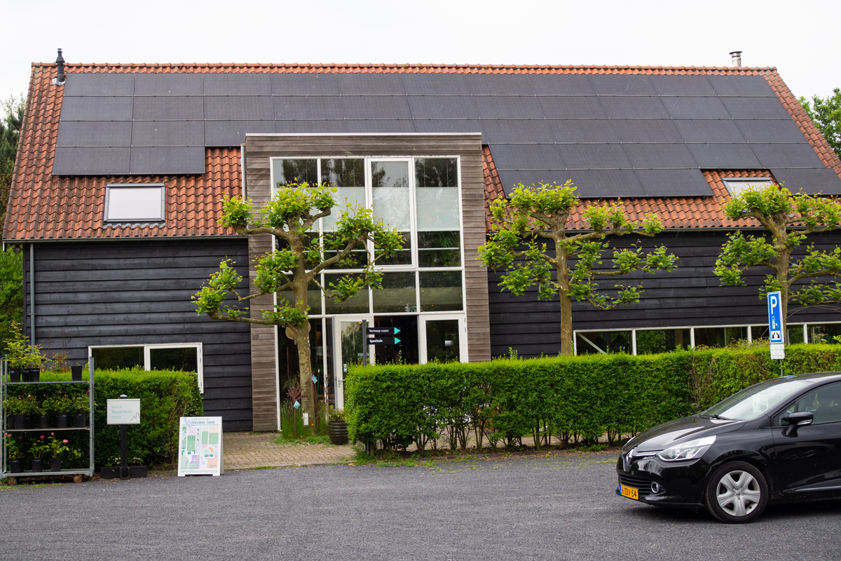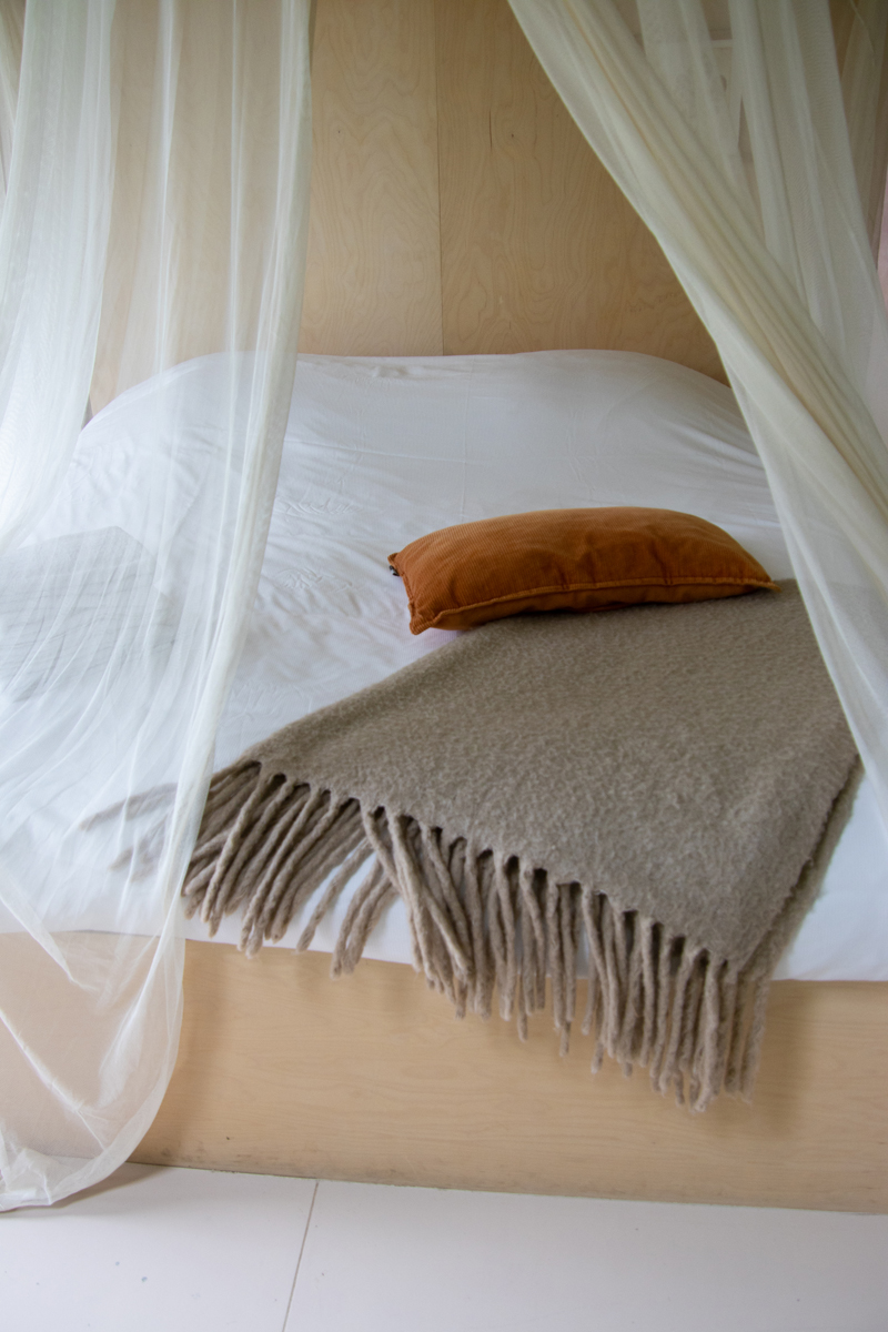 Behalve het hoofdgebouw, waar je iets kleins kunt nuttigen op het terras, staan er slecht een handjevol eco-cabins op het terrein. Het is dan ook geen camping, maar een rozenkwekerij. Wij sliepen in cabin Primrose en genoten van de prachtige rozen in de grote tuin.
