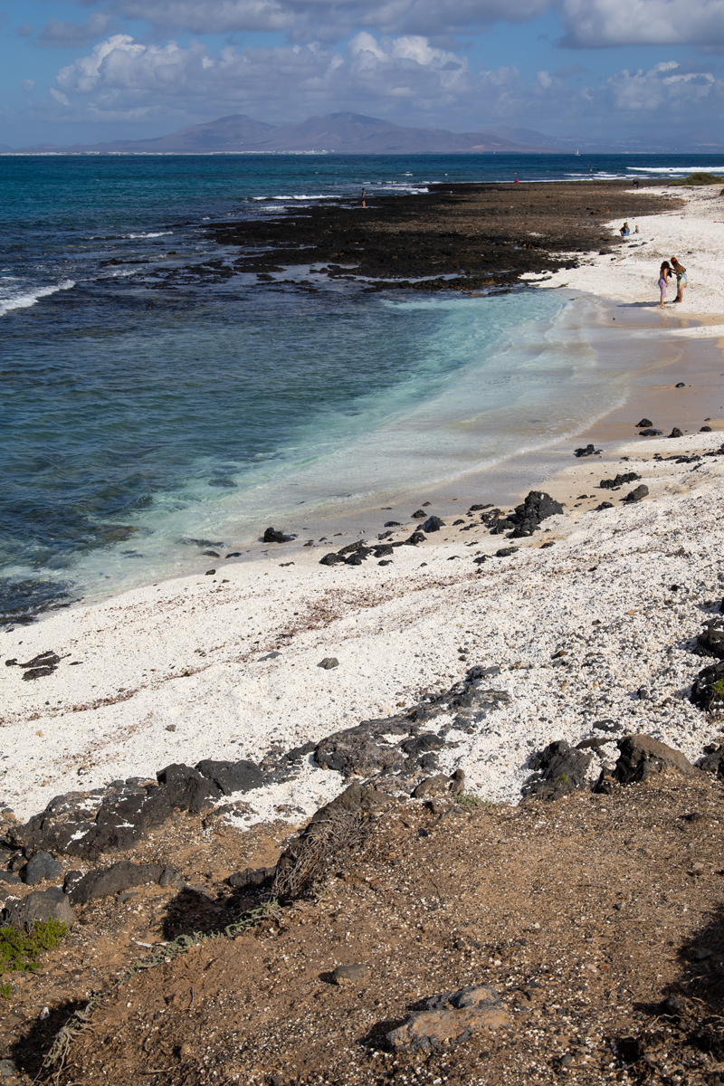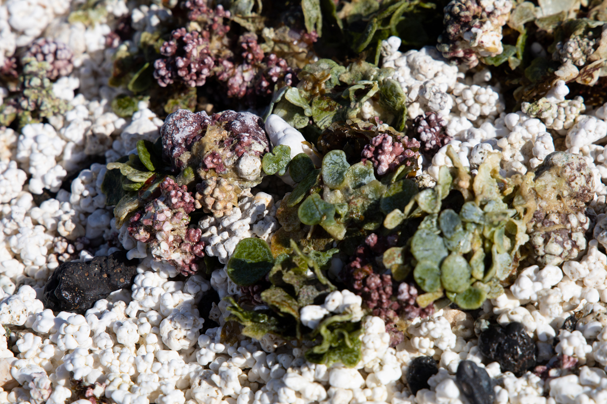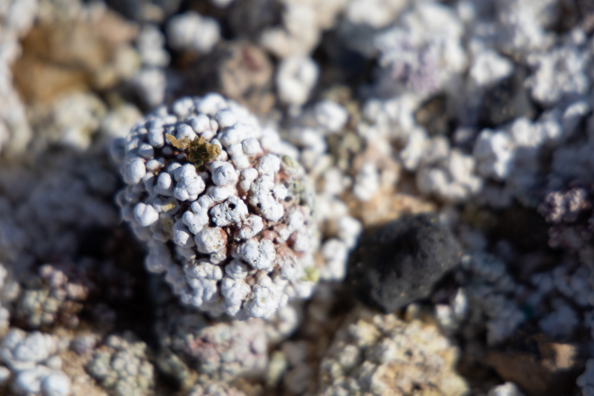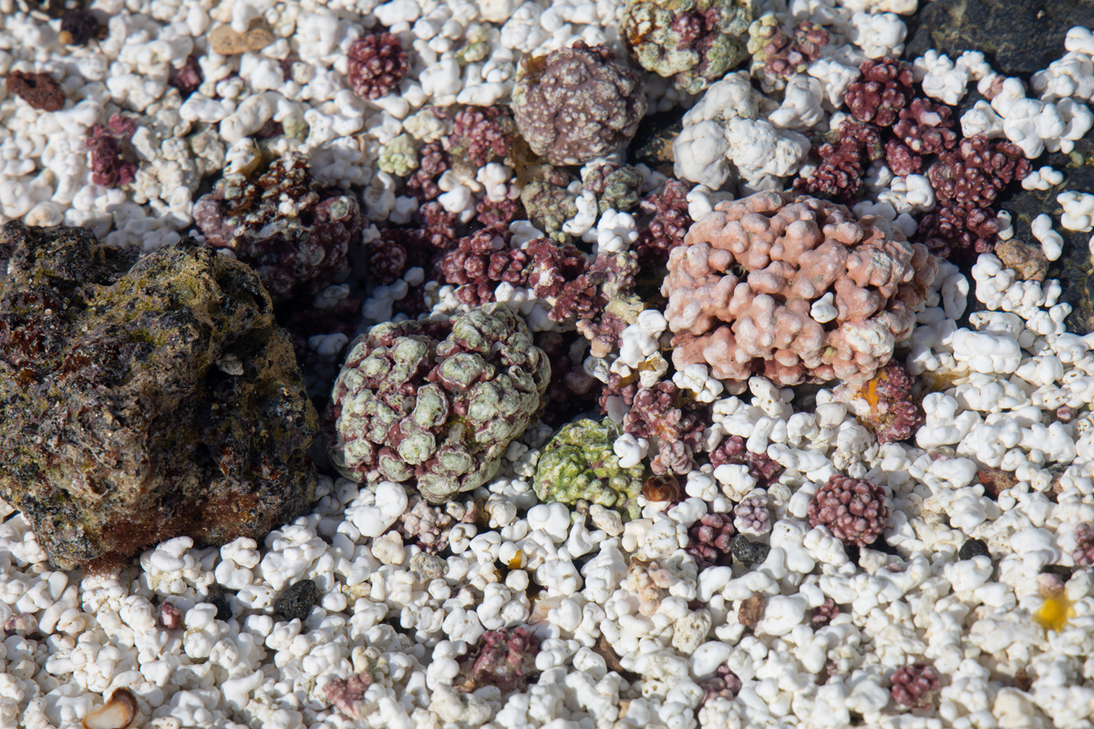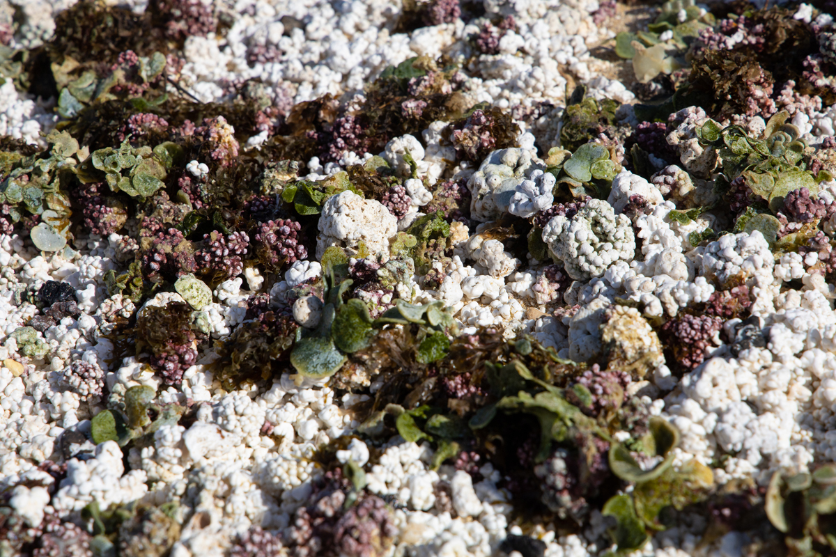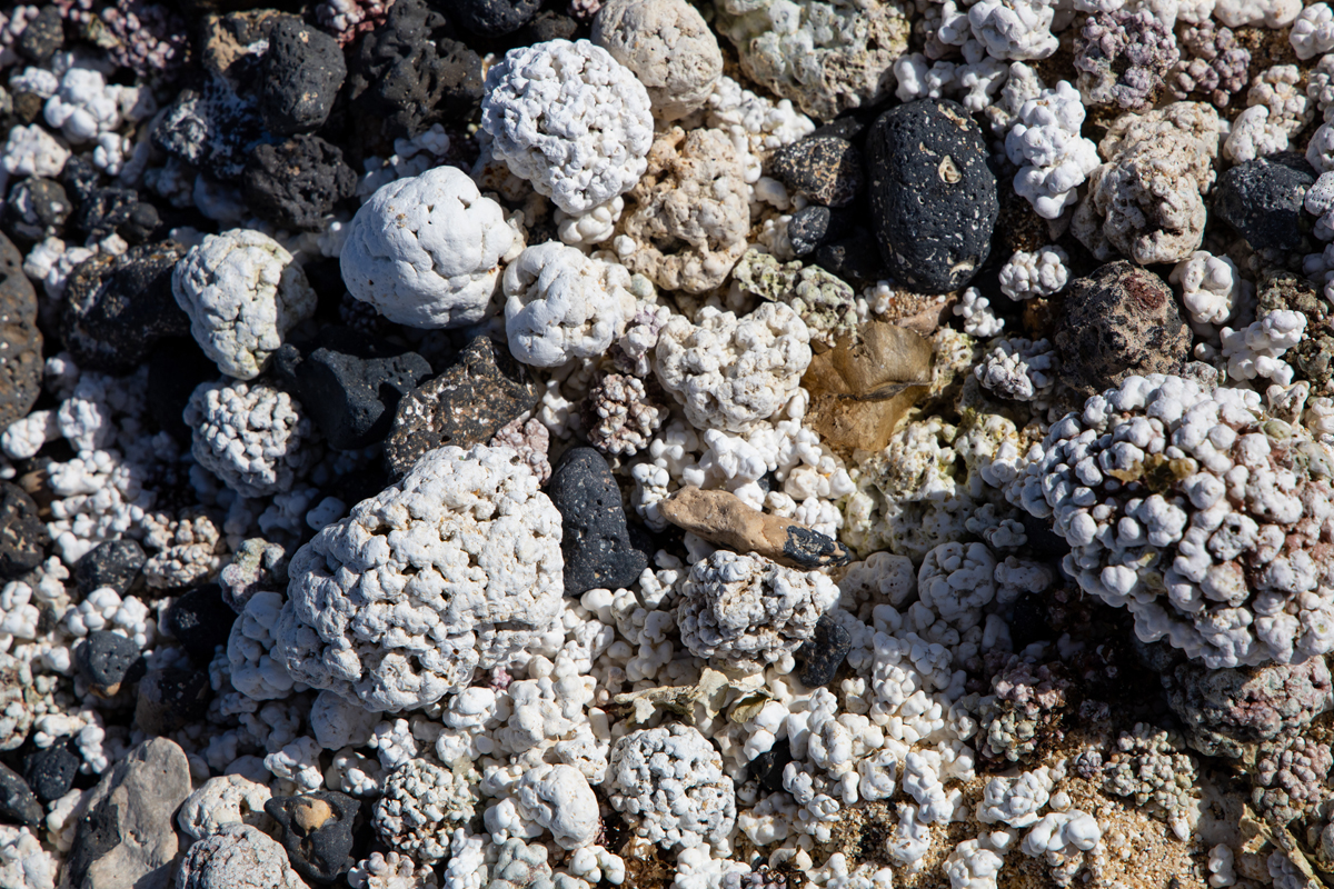 We hebben het over ‘Playa del Bajo de la Burra’ een strandje in het noorden van het Canarische eiland Fuerteventura, dat in de volksmond bekend staat als ‘Popcorn Beach’. De ‘popcorn’ bestaat uit duizenden kleine, witte fossielen van kalkalgen, zogenaamde ‘rhodolieten’. Deze algen groeien langzaam – eeuwen! – op de zeebodem en worden na hun leven naar de kust gedreven, waar ze met elkaar dit bijzondere strand vormen.